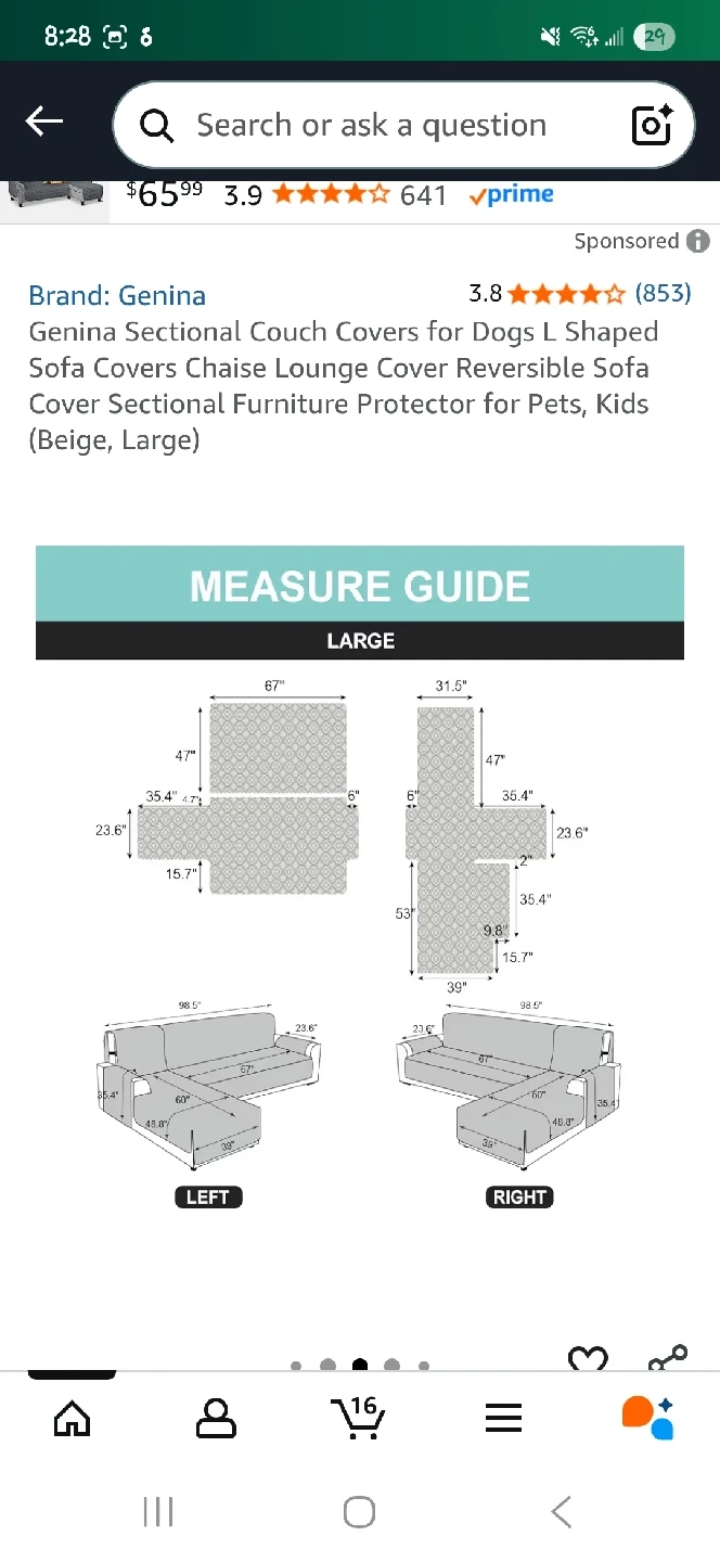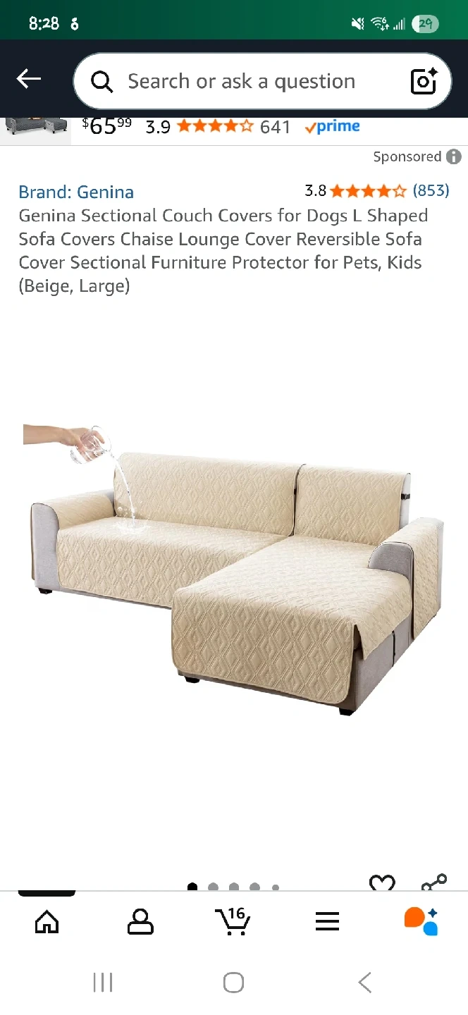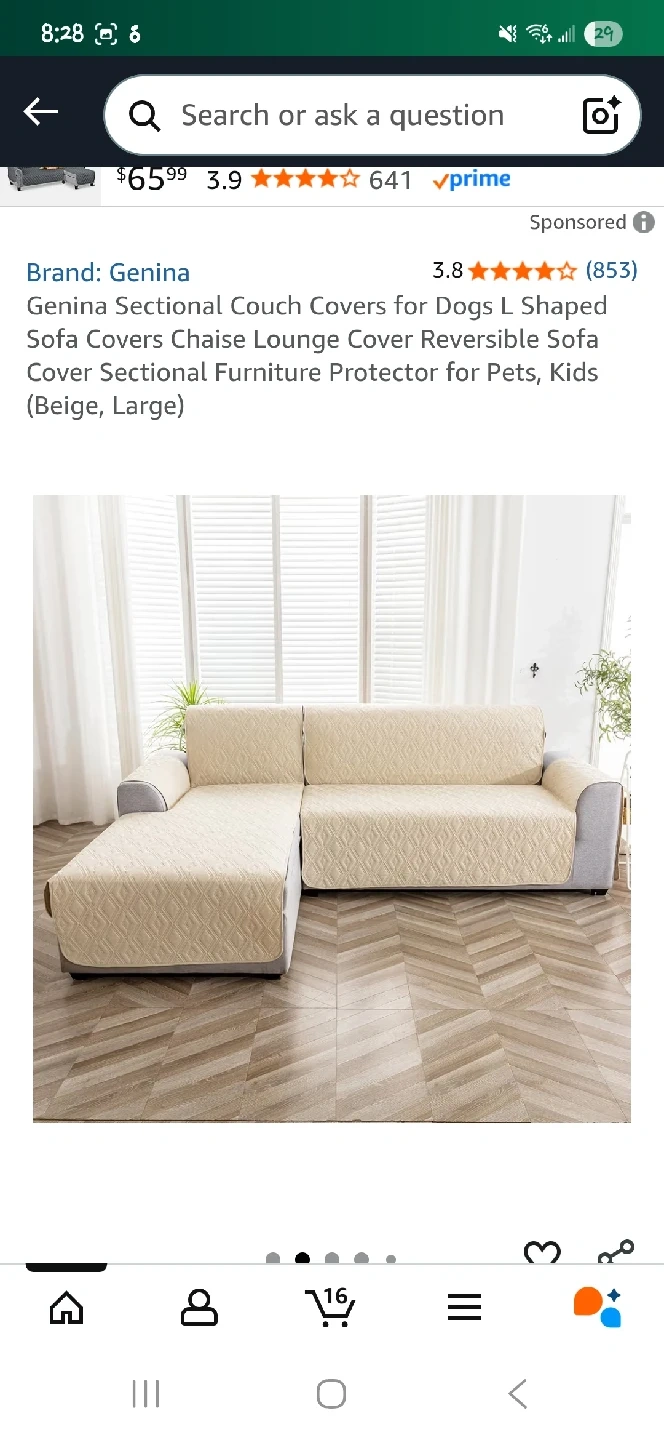 10Genina Sectional Couch Covers for Dogs L Shaped Sofa Covers Chaise Lounge Cover Reversible Sofa Cover Sectional Furniture Protector for Pets, Kids (Beige, Large) BNIB Amazon price $110 plus hst Our price $65