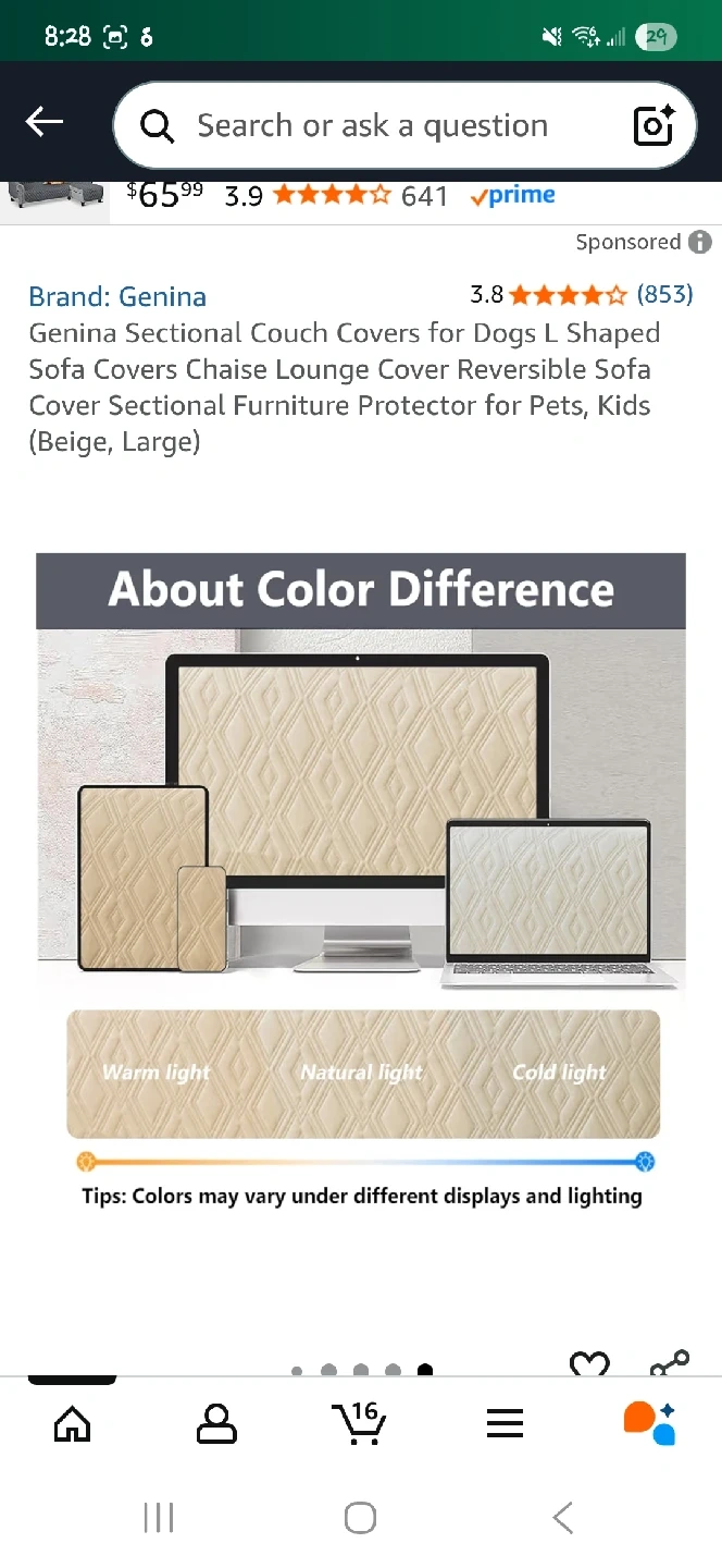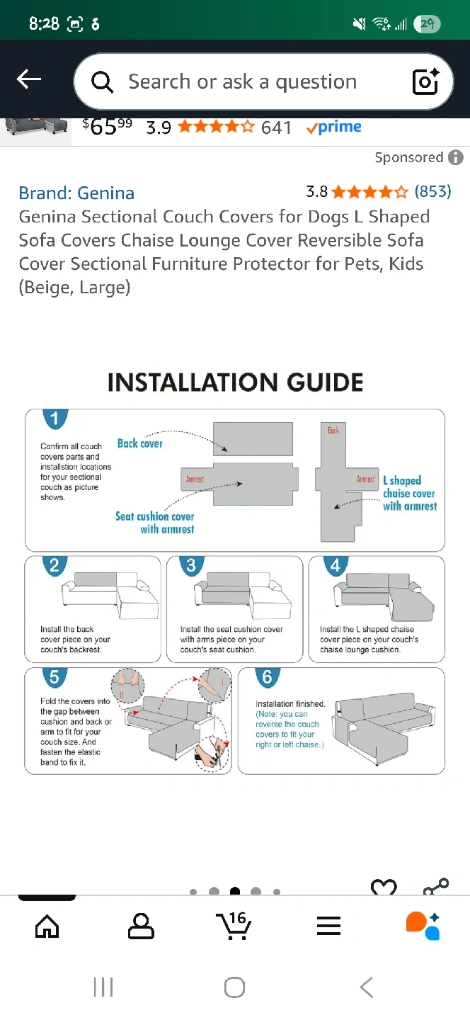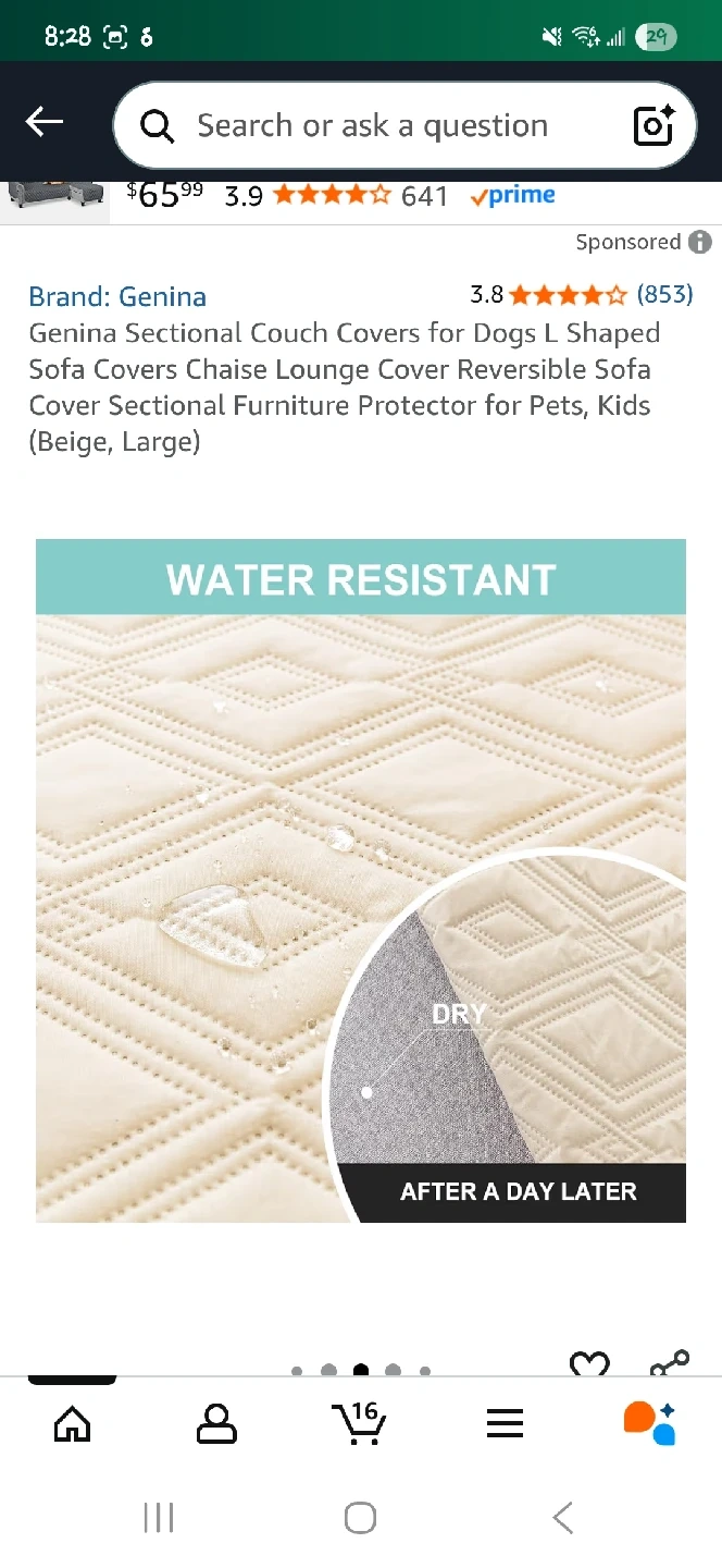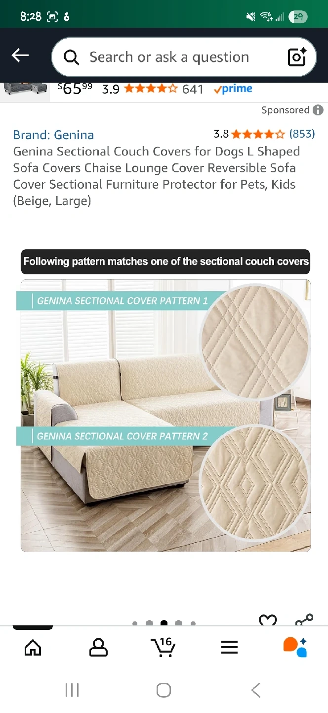 10Genina Sectional Couch Covers for Dogs L Shaped Sofa Covers Chaise Lounge Cover Reversible Sofa Cover Sectional Furniture Protector for Pets, Kids (Beige, Large) BNIB Amazon price $110 plus hst Our price $65