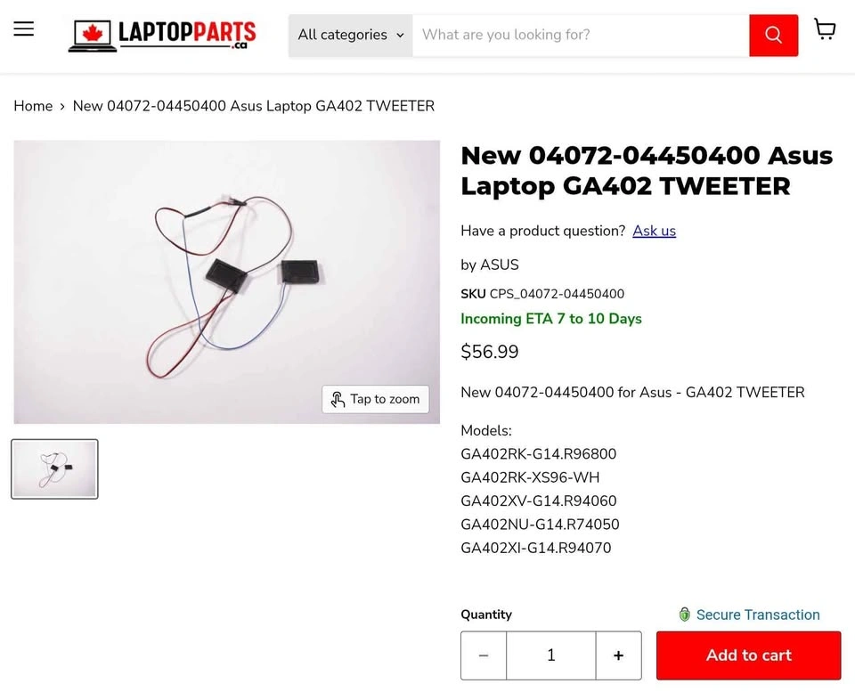 Selling barely used Genuine Asus ROG Zephyrus G14 Laptop Tweeters. Like New! Models: GA402RK-G14.R96800 GA402RK-XS96-WH GA402XV-G14.R94060 GA402NU-G14.R74050 GA402XI-G14.R94070