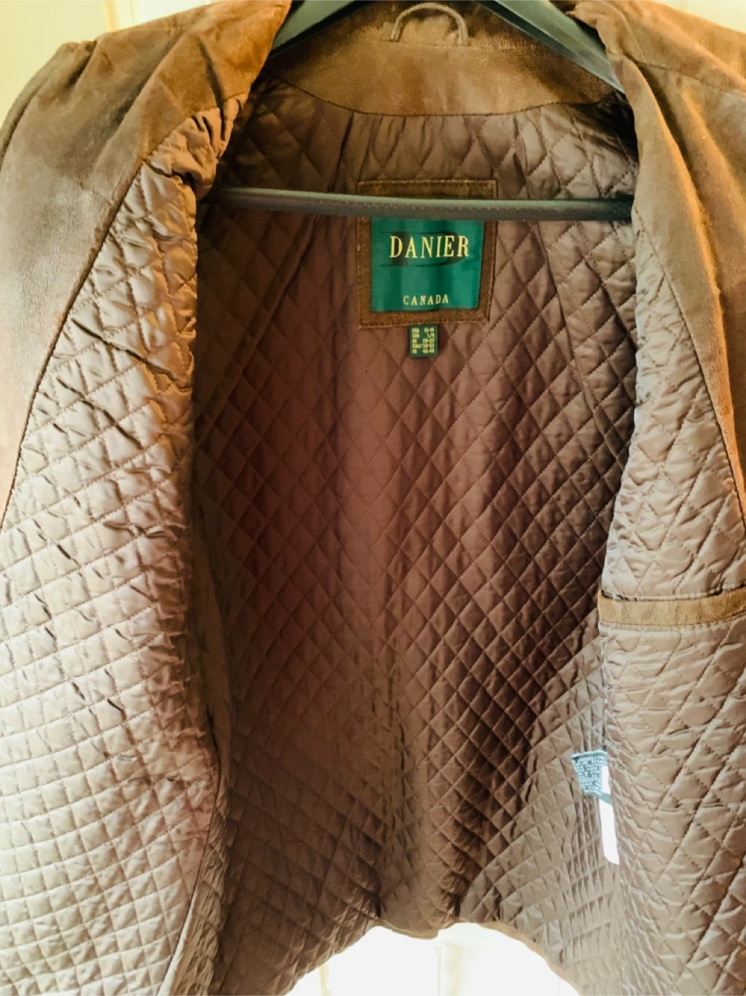 153Pristine LIKE NEW condition. Danier brand dark brown genuine leather jacket with pockets in each side and one inner pocket. Not that heavy. $75 CAD PRICE FIRM to sell. Smoke Free Home. MEET-UP LOCATION (no mail. / no delivery): - Public Meet-up: McLean Community Centre (95 Magill Dr. Ajax corner of Westney/Magill)… OR … - Door Pickup: 1 block from the Centre (address to be provided on the day of pickup) SERIOUS BUYERS ONLY / FINAL SALE / Cash Payment at pickup / NO HOLDS (Items will be sold on a FIRST-COME/PAYMENT-FIRST-SERVE basis!)