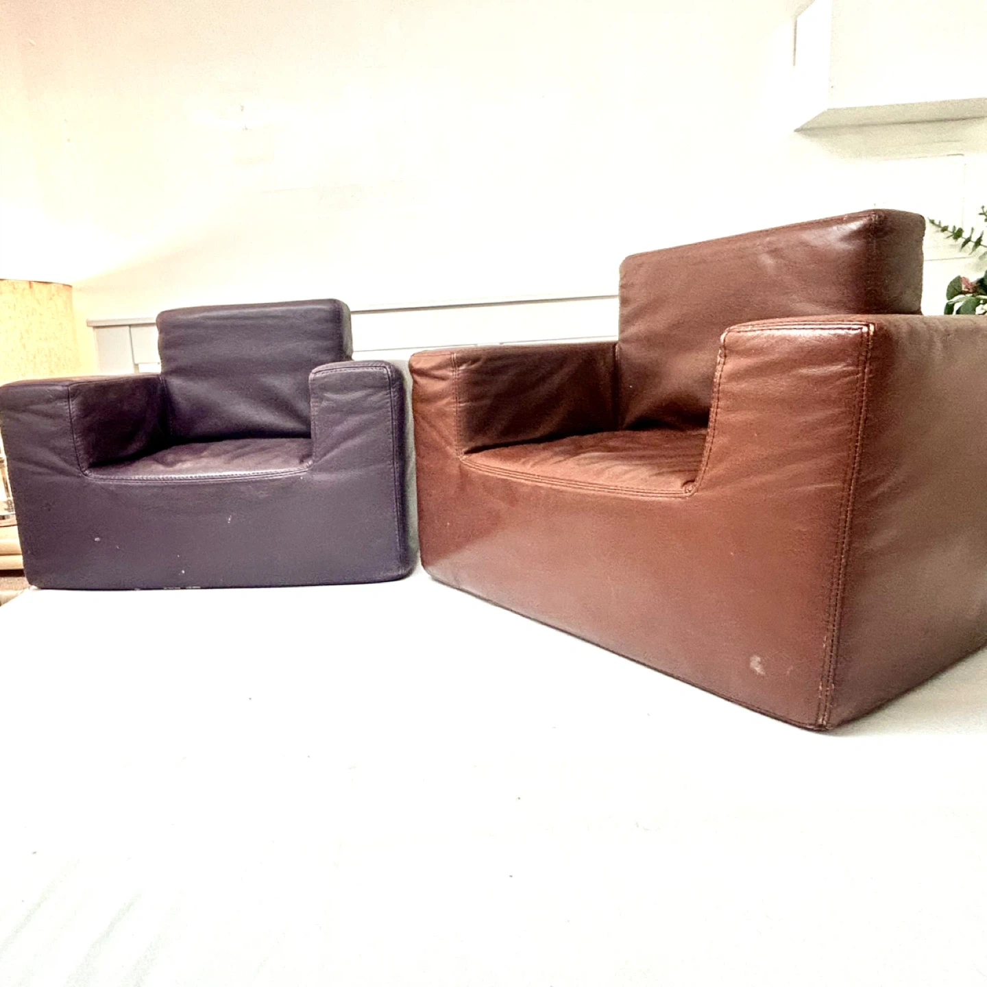 174Brown & Purple-Two cute leather armchairs for kids! One is a lovely brown, and the other is a nice purple colour. They're in good condition and perfect for a playroom or kids' room $62.00 each or BOTH FOR $100. Bundle with my other listings for further discount!