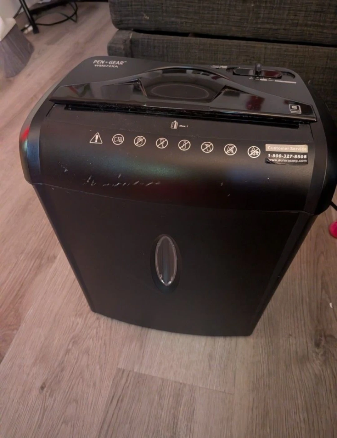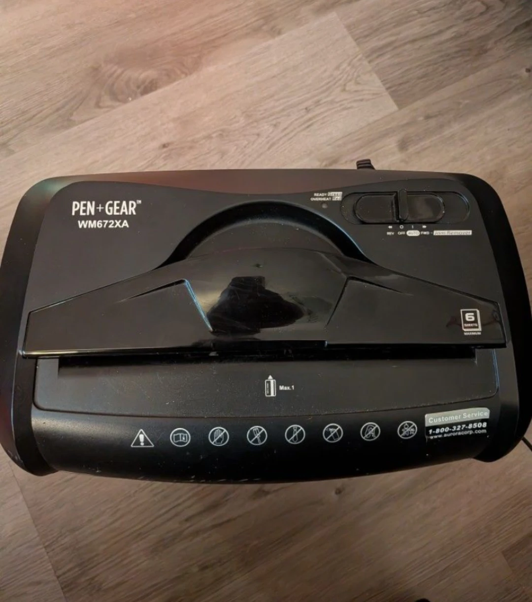 Selling a Pen+Gear WM672XA shredder. It has a jam remover function and can shred up to 6 sheets at a time. It's in good working condition and ready to use!