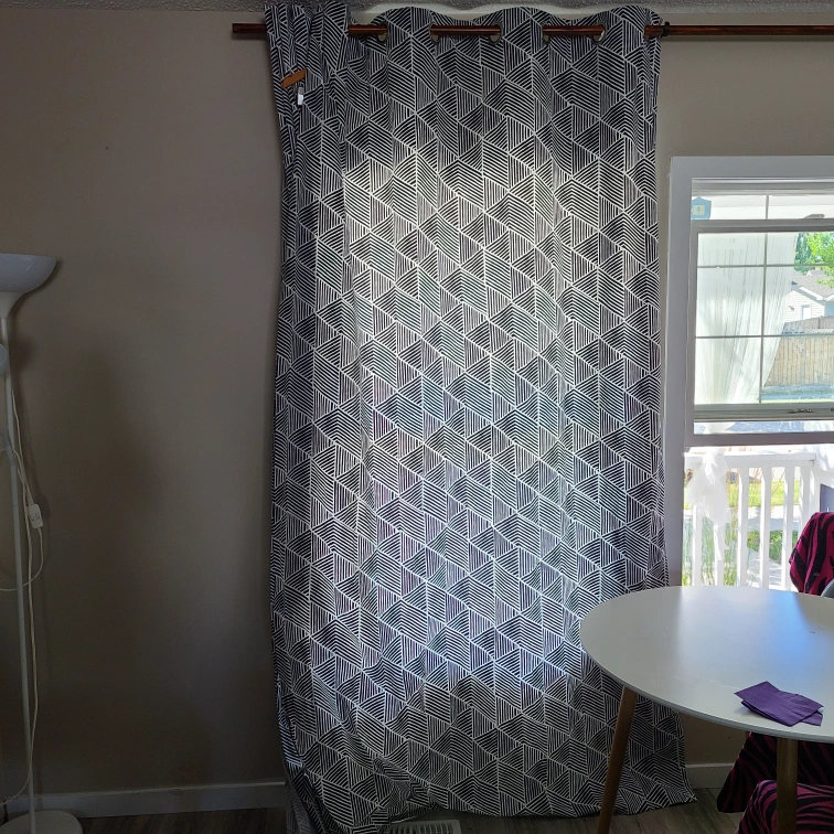 Blue and white geometric print curtains. purchased from Ikea no damage! from a smoke free/ pet free home 96" x 58" ( long) heavy canvas type fabric exact cash only, no holds, no delivery
