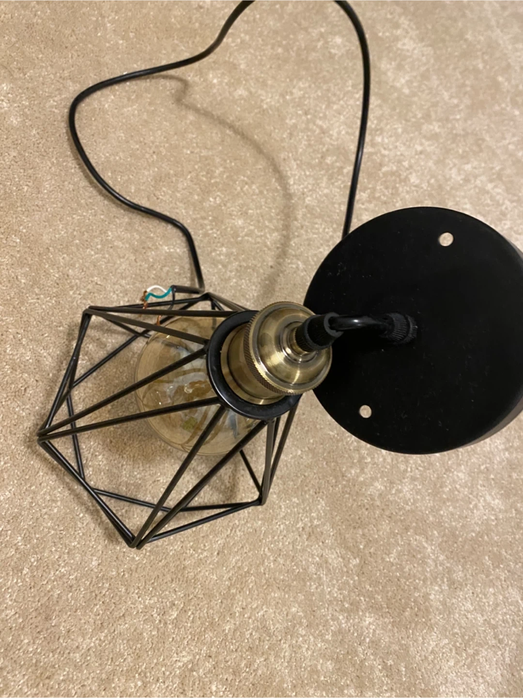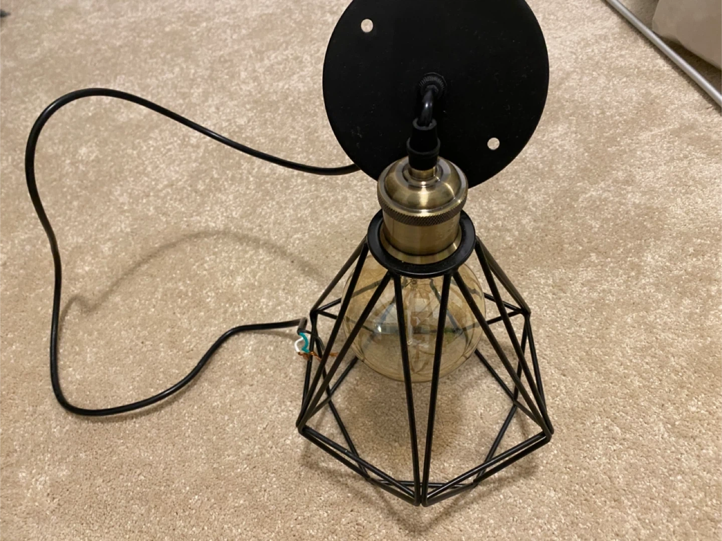 Add a touch of modern style to your space with this geometric pendant light! It features a black metal frame and a warm-toned bulb, perfect for creating a cozy atmosphere in any room