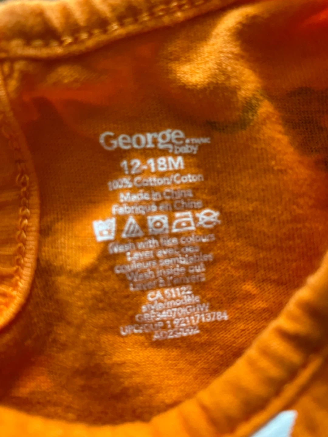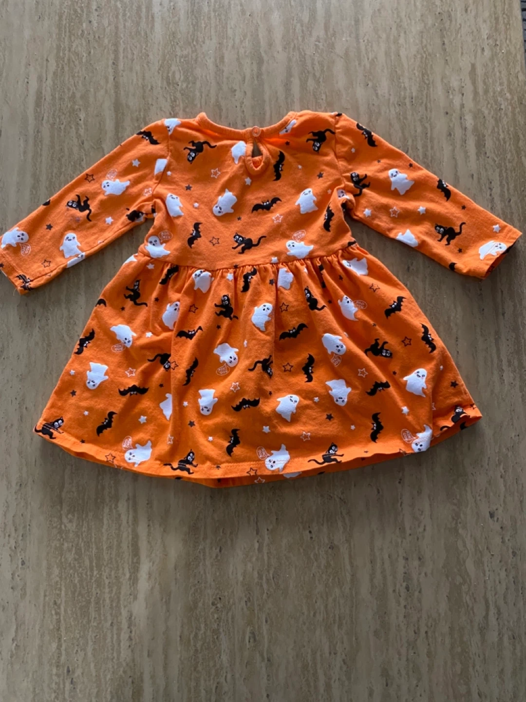 77Super cute Halloween dress for your little one! This orange dress from George Baby is size 12-18 months and features a fun pattern with ghosts, bats, and cats. It's made of 100% cotton, so it's soft and comfy for your baby Pick up Sage Hill NW Cash only Pet and smoke free home Check out my other items