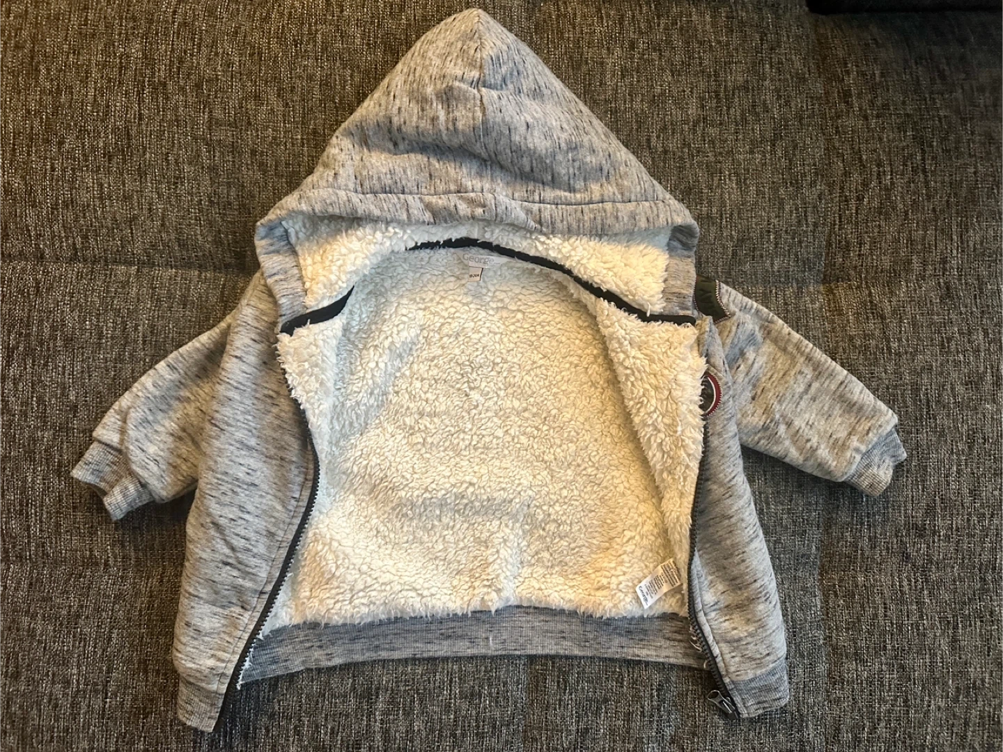 29This George brand hoodie is perfect for keeping your little one warm. It's a size 18-24 months and features a cozy, sherpa-lined interior, making it ideal for cooler weather. The grey colour is versatile and looks great with everything. Bearly used, just like new. Specifications: * Brand: George * Size: 18-24 Months * Colour: Grey * Lining: Sherpa See my other listings for more kids' winter clothes, thank you.