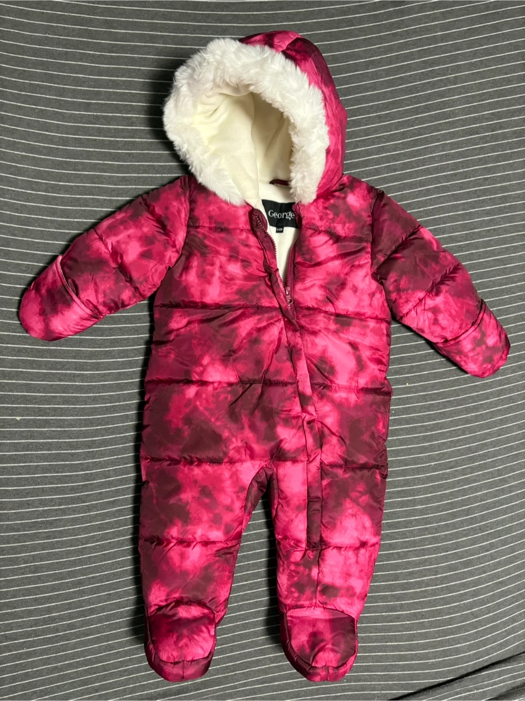 77VGUC George baby puffer snowsuit! Size 6-12 months. Sleeves have built in hand coverings that can be flipped open or closed Porch Pickup Harmony & Adelaide area