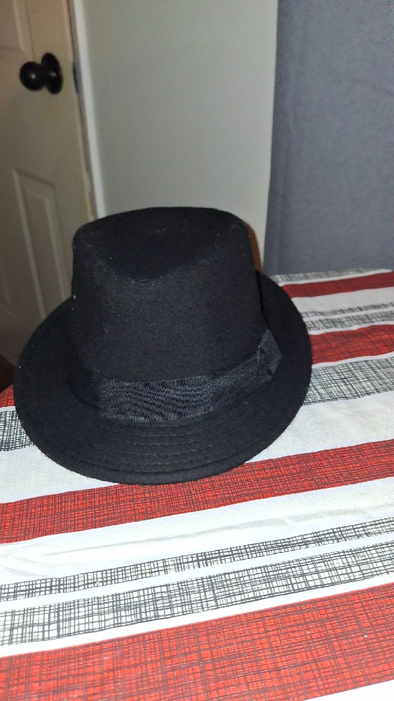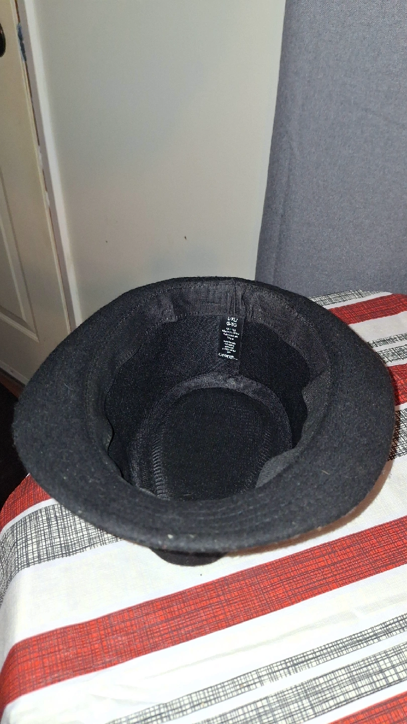77Selling a black fedora hat from George. It's in great condition and is a size 9-10. Perfect for adding a bit of style to any outfit!