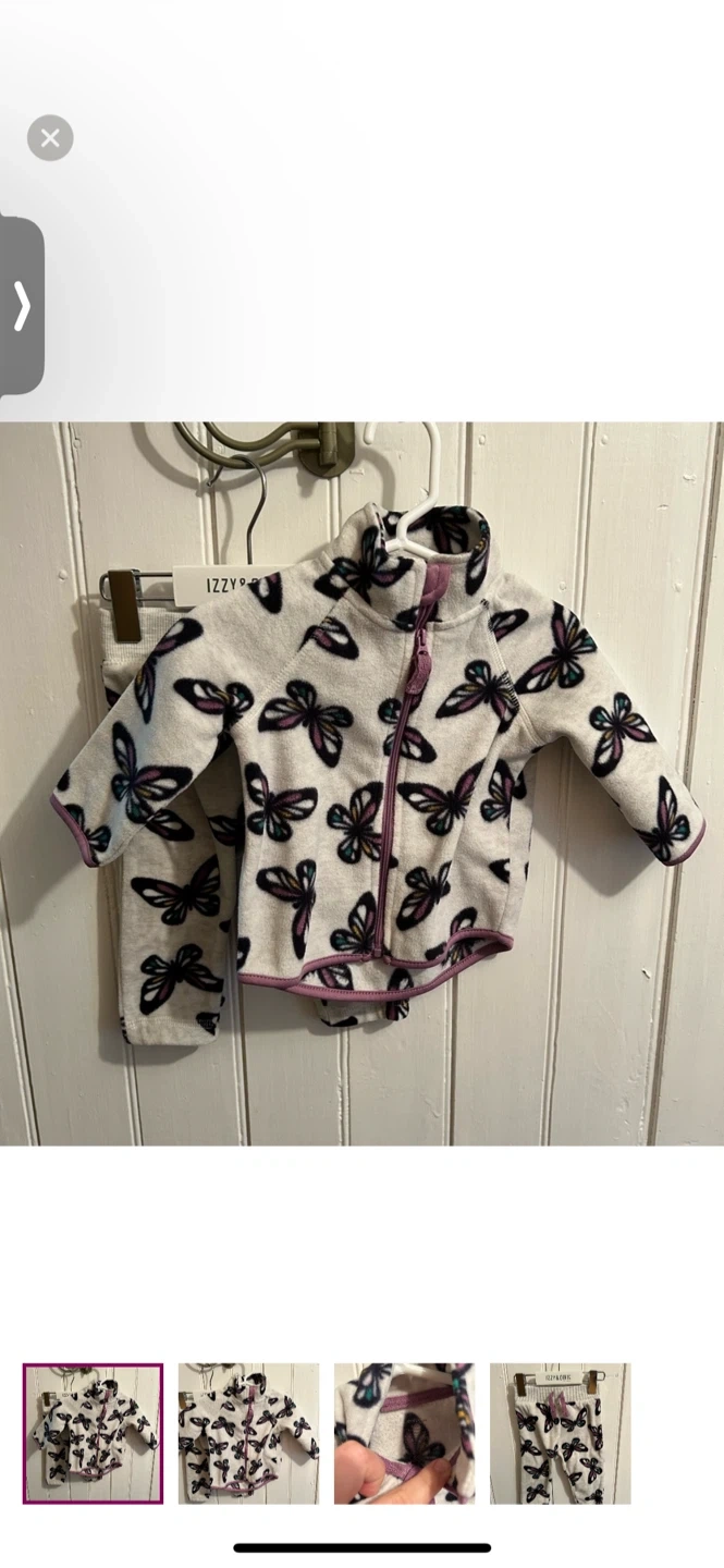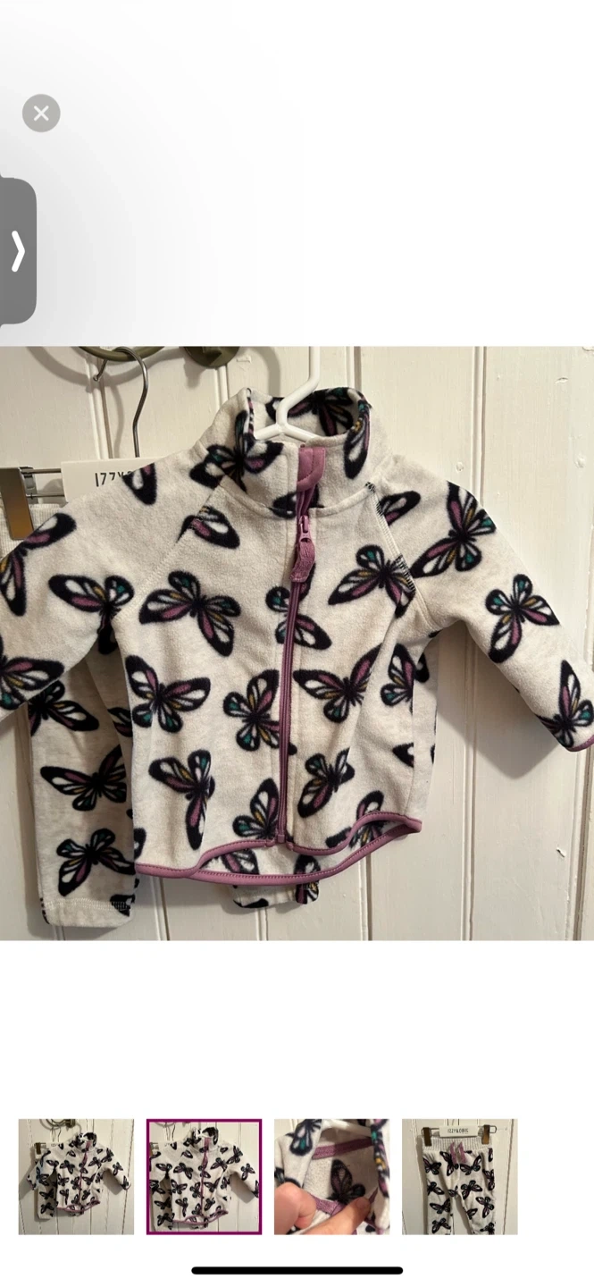 12George brand. Zip up fleece sweater with matching pants. Grey with multicoloured butterfly print. Size 3/6m. Brand new condition $3 Pickup Kincardine area or Peterborough but I can arrange delivery in port Elgin, walkerton-Durham, wingham-listowel-kw/cambridge/guelph, goderich-bayfield, & Arthur-Orangeville-Newmarket-Lindsay AREAS.