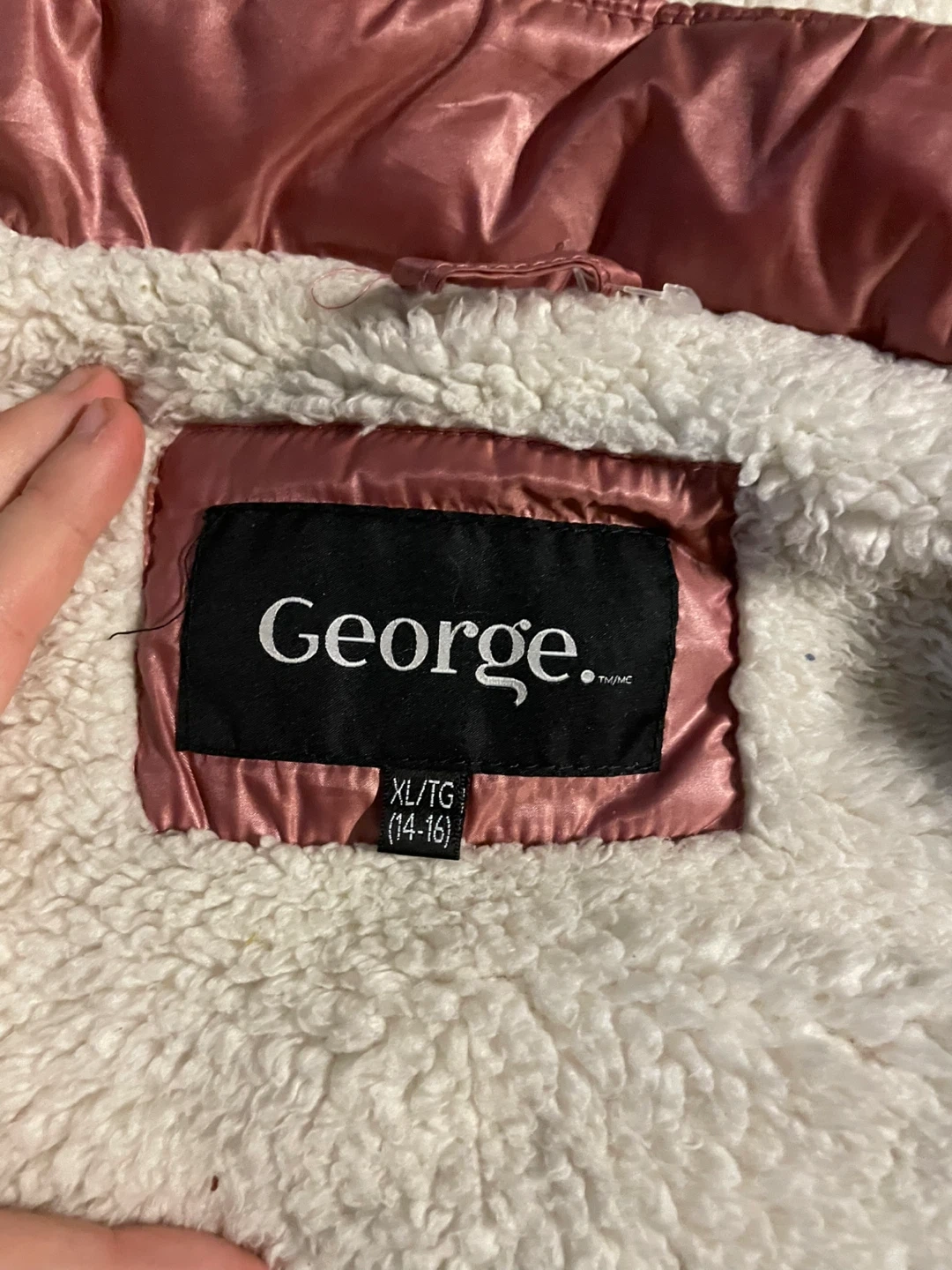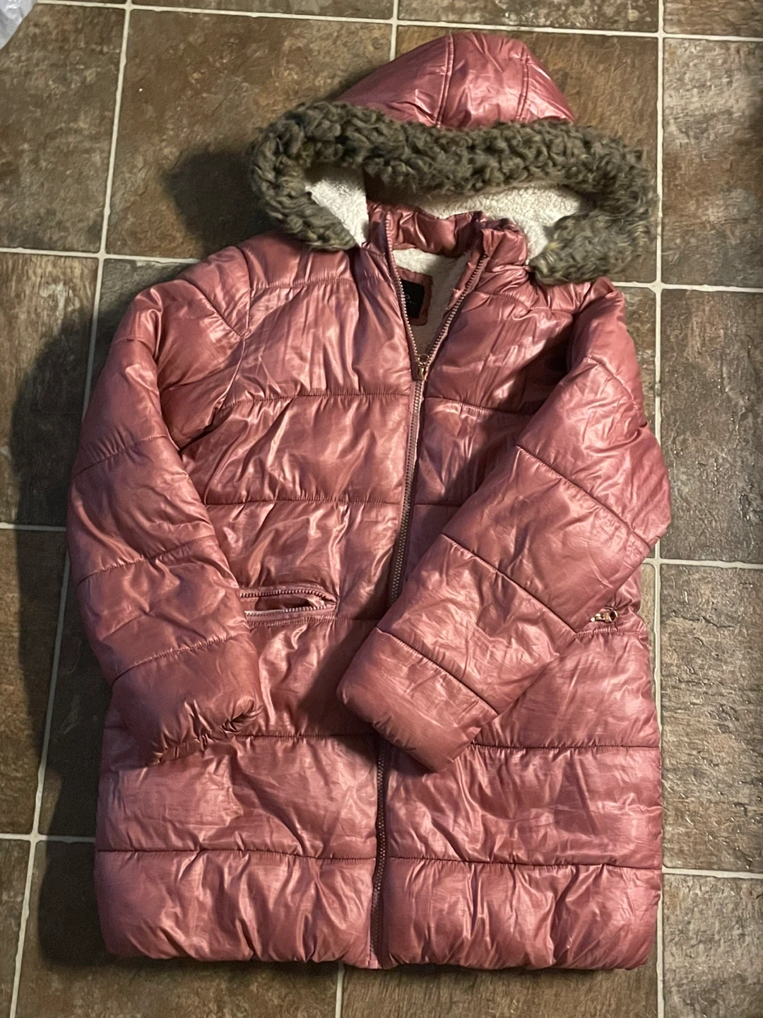 10George puffer winter jacket for girls XL (14-16) size Sherpa inside and fur lined hood Long and warm Great for winter