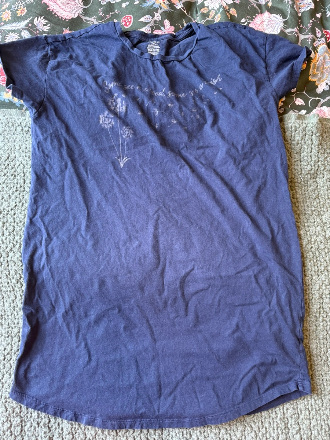 Navy blue cotton nightshirt. Features a dandelion print. Large size.