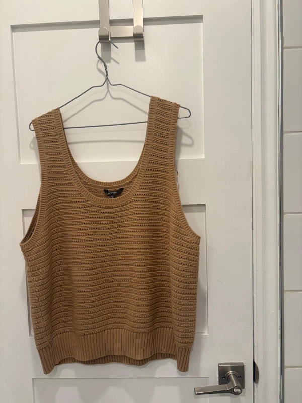 612Cozy George knit tank top in size XXL. It's a lovely tan colour and in great condition! Perfect for layering or wearing on its own.