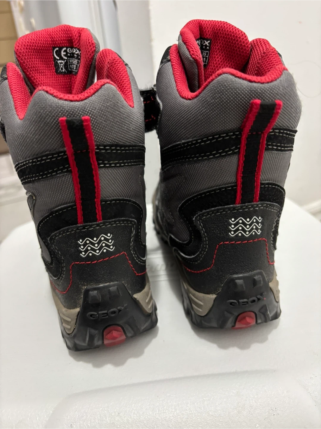 190Geox Amphibiox winter boots for kids, perfect for keeping little feet warm and dry during the cold months! They have a velcro strap for easy on and off, and a grippy sole for traction. These boots have been gently used but are still in great condition!