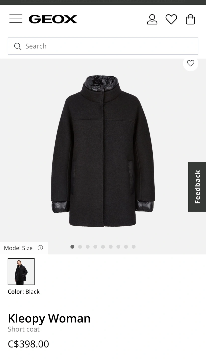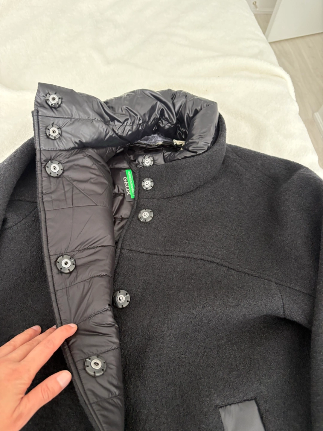 Selling a stylish Geox Kleopy Woman short coat in black. This coat features Geox's inner breathing system and insulation index, ensuring comfort and breathability. It's a versatile and fashionable piece for any wardrobe!