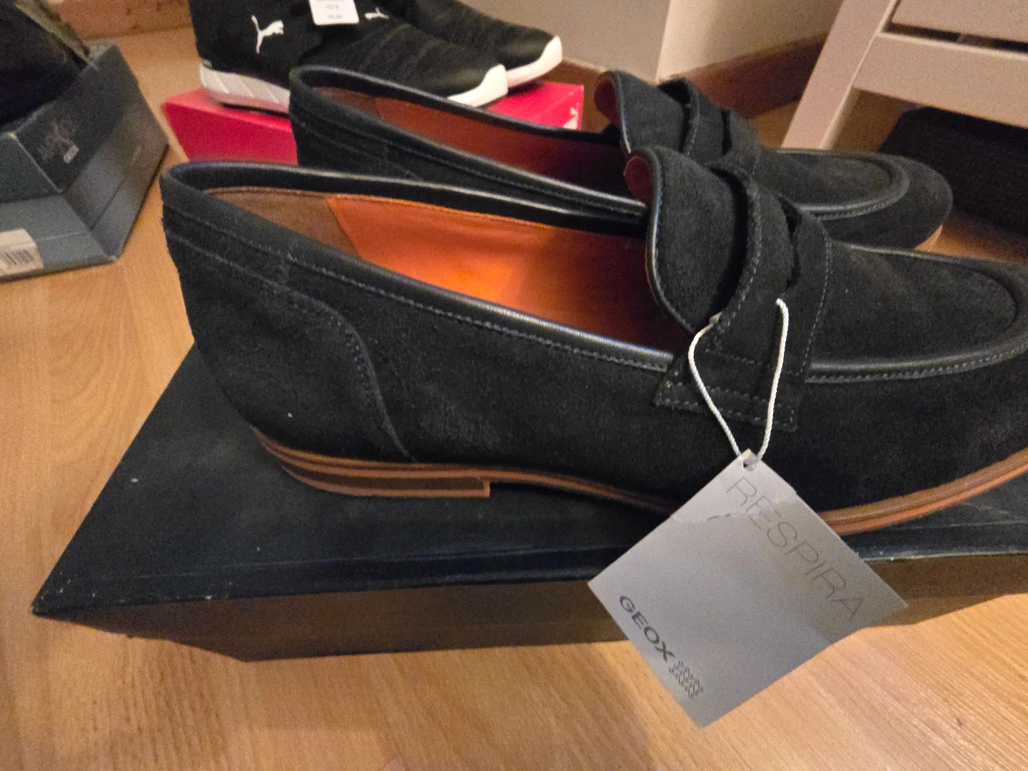 18Selling a pair of Geox Respire loafers in dark blue. They're a size 10.5. Brand new unworn with tags still attached.