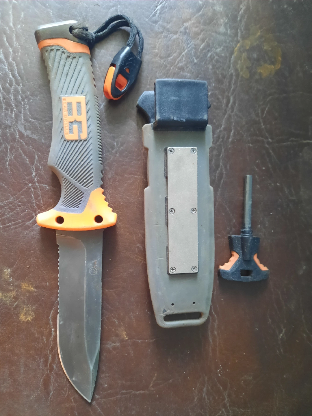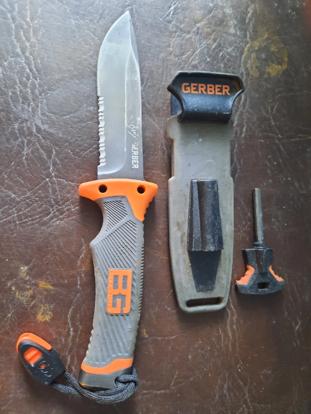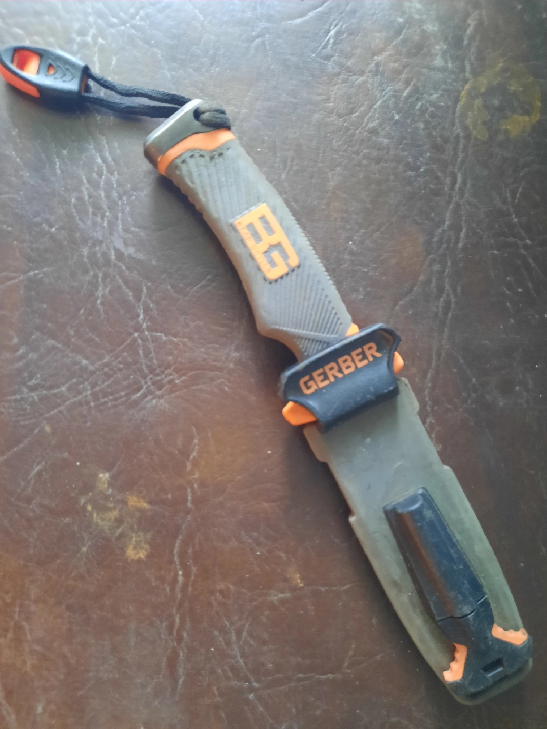 10Selling a Gerber Bear Grylls Survival Knife! This knife comes with a sheath and fire starter. It's perfect for camping or any outdoor adventures!
