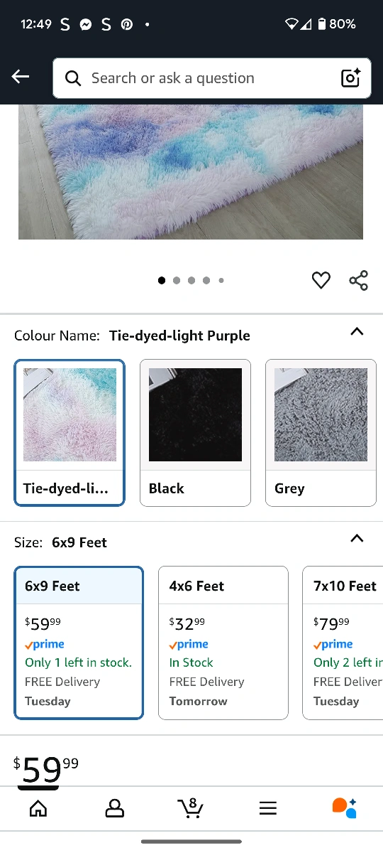 Snuggle up with this GERBIT Luxury Shag Area Rug! It measures 6x9 feet and features a trendy tie-dyed light purple colour. These plush fuzzy rugs are perfect for adding a cozy touch to any room, especially a bedroom or nursery. The non-slip shag provides extra safety and comfort for indoor use. Brand new.