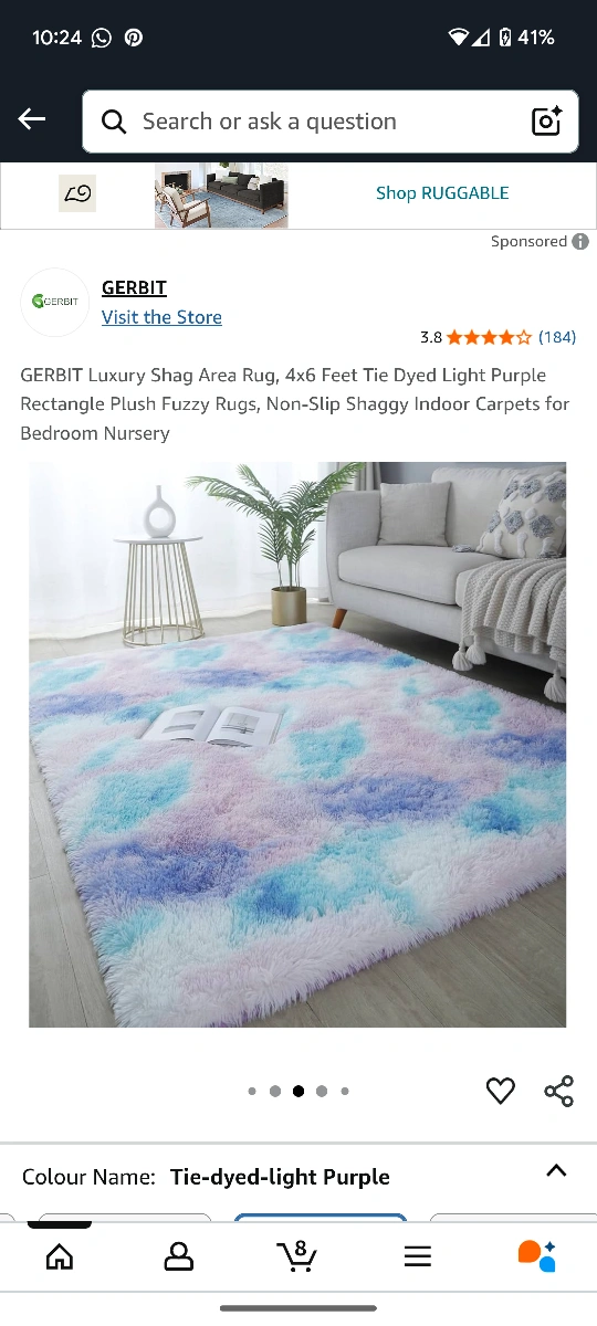 Snuggle up with this GERBIT Luxury Shag Area Rug! It measures 6x9 feet and features a trendy tie-dyed light purple colour. These plush fuzzy rugs are perfect for adding a cozy touch to any room, especially a bedroom or nursery. The non-slip shag provides extra safety and comfort for indoor use. Brand new.