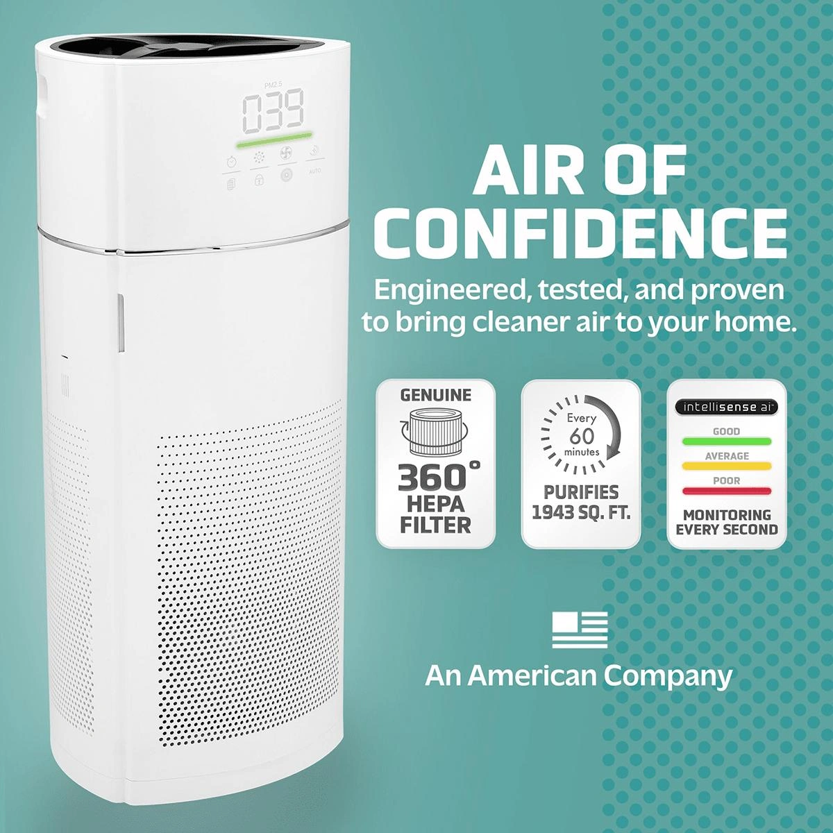 This powerful 360 degree GermGuardian 4-in-1 Air Purifier (AC9400W) is ideal for medium to large sized rooms such as: dorms, bedrooms, and other living areas with HEPA and carbon filter. Captures 99.97% of dust & allergens, reduces household odors caused by smoke, cooking and pets. It includes an Air Quality Monitor that detects the amount of particles in the air and automatically adjusts the speed to optimize room air quality when in auto mode. The air purifier stands about 28.5 inches tall, has a timer up to 12 hours and a touch display with child lock. Sealed in box (BNIB)