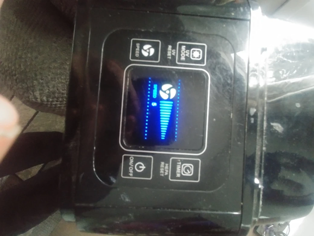 233Black air purifier with a HEPA filter, UV light, and timer function. filter is brand new. no need to replace for 2 years.