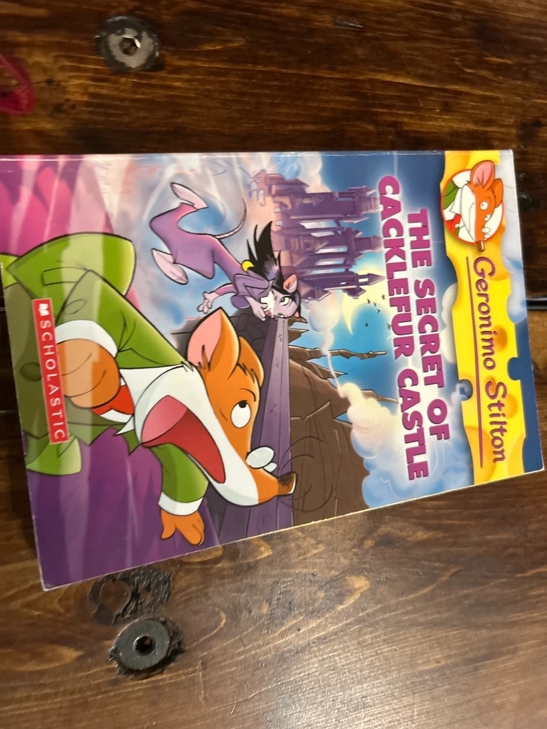 10A Geronimo Stilton's "The Secret of Cacklefur Castle" book! It's part of the Geronimo Stilton series and is a fun read for kids!