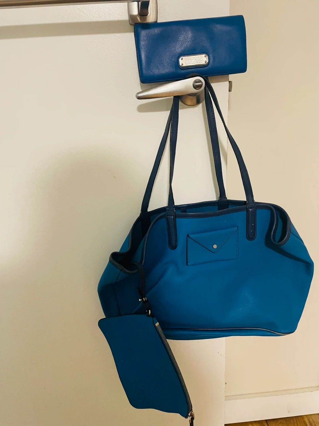 Buy & SellMarc by Marc Jacobs Tote BagMarc by Marc Jacobs Tote Bag$50This is a Marc by Marc Jacobs tote bag in teal. It's made of leather and has navy blue trim. Comes with a matching wallet and clutch.ConditionGoodBrandMarc by Marc JacobsWHERE TO MEETCheck LocationView MapSELLERverifiedDianaEast New York1427 reviews0 chats·0 favorites·7 viewsSEND CHAT TO SELLERHi Diana! I’m interested in your listing.Hi Diana! I’m interested in your listing.Get the Karrot app to chatSign In to chat