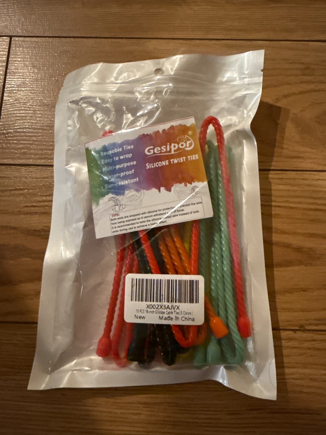 65I'm selling a pack of brand new Gesipor silicone twist ties! These are reusable, easy to wrap, multi-purpose, water-proof and sun-resistant. The pack contains 10 pieces of 18-inch silicone cable ties in 5 colours.