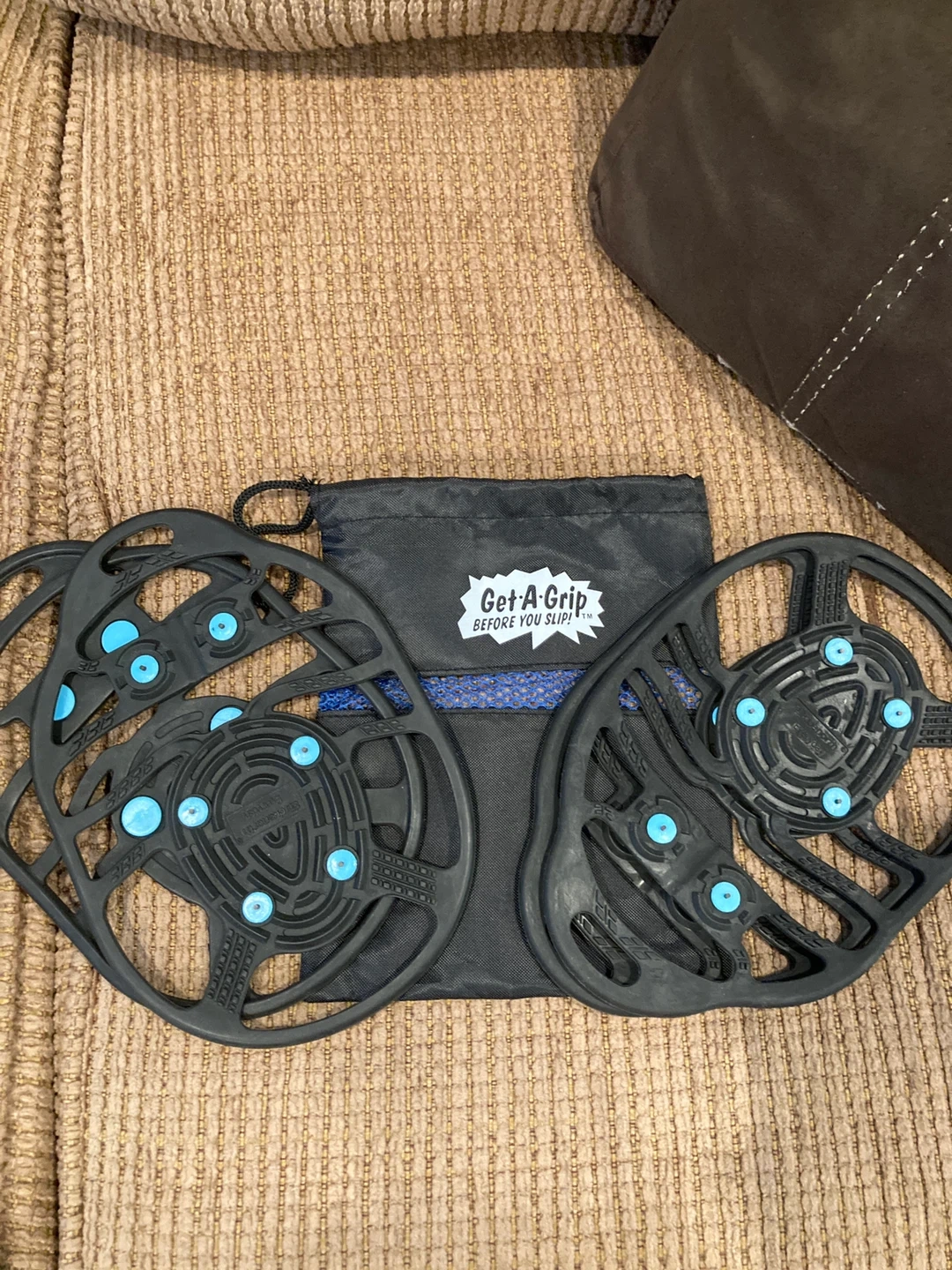 20Get ready for winter with these Get-A-Grip Before You Slip! ice grips! They come with a handy carrying bag, so you can easily store them when not in use. Perfect for staying safe on icy sidewalks and trails 2 pairs large/xlarge