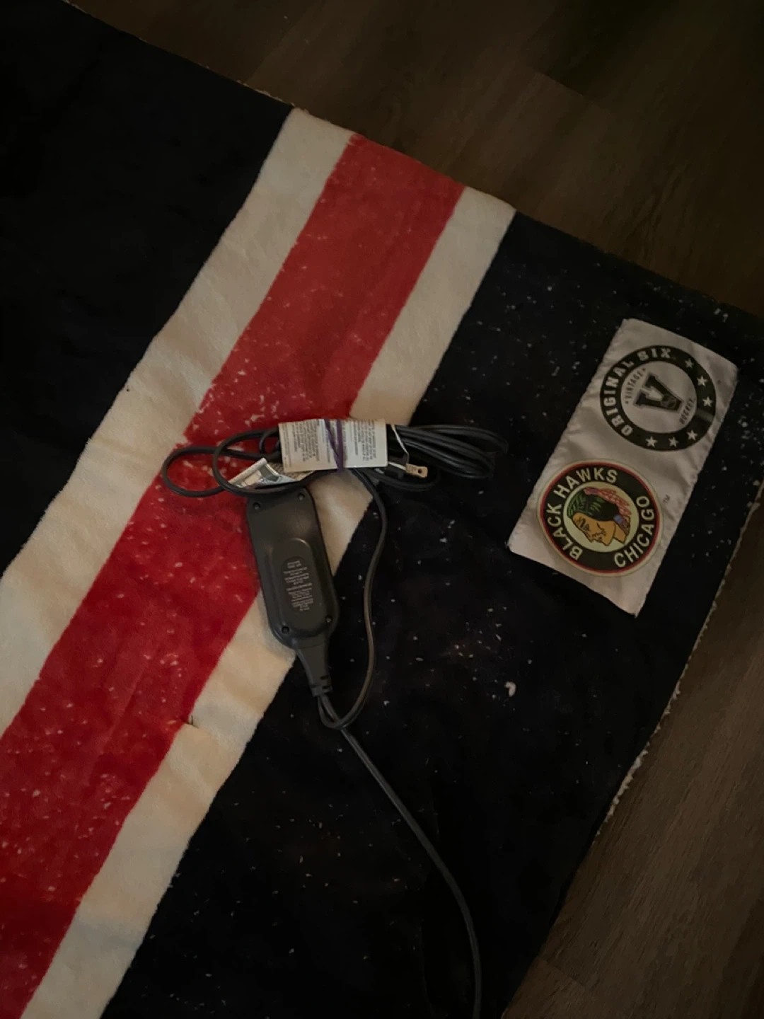 Stay warm with this Chicago Blackhawks heated throw blanket! It features the team's vintage logo and signature colours. The blanket includes a power cord and controller for adjustable heat settings. Perfect for any Blackhawks fan looking to get cozy.