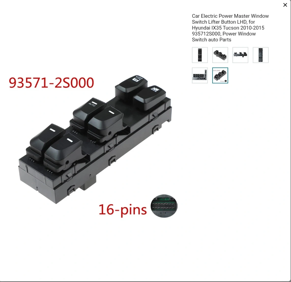 This is a 16-pin power window master switch assembly. It's designed for the driver's side of a Hyundai IX35. This switch controls all the power windows in the vehicle.