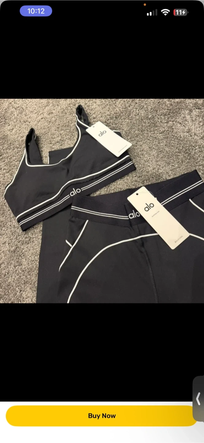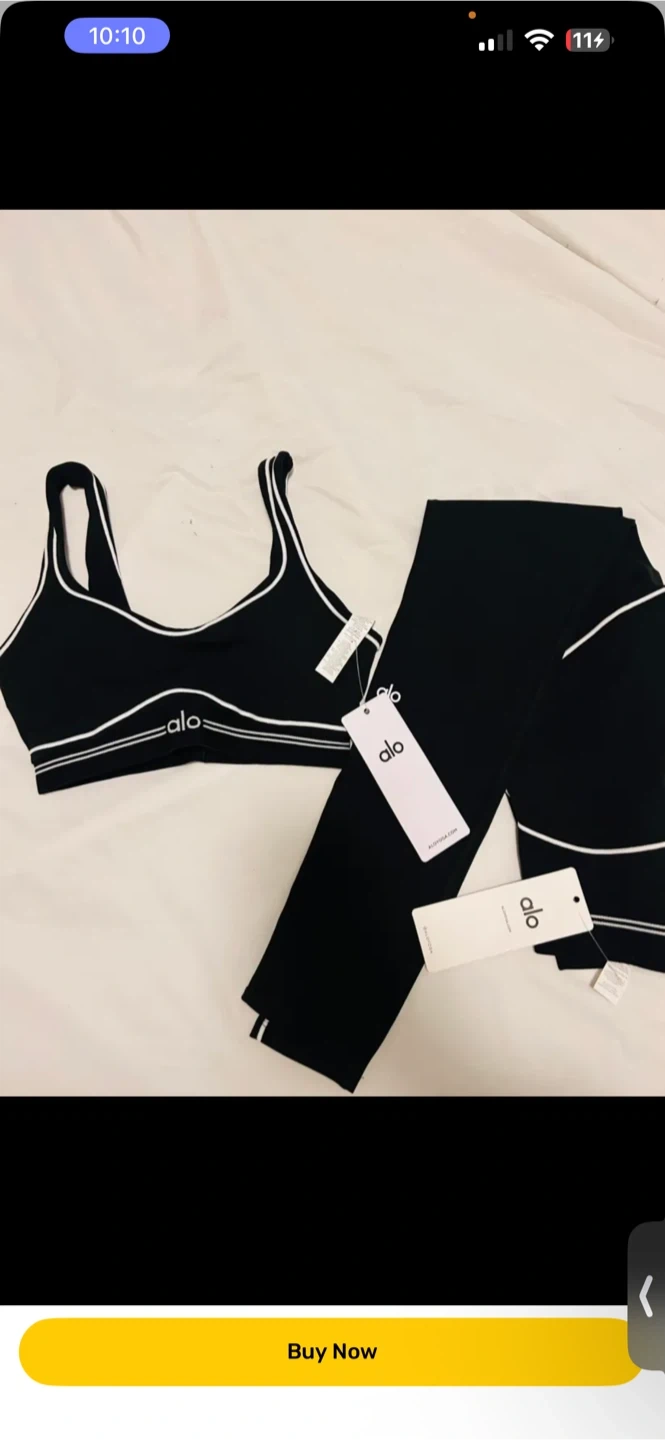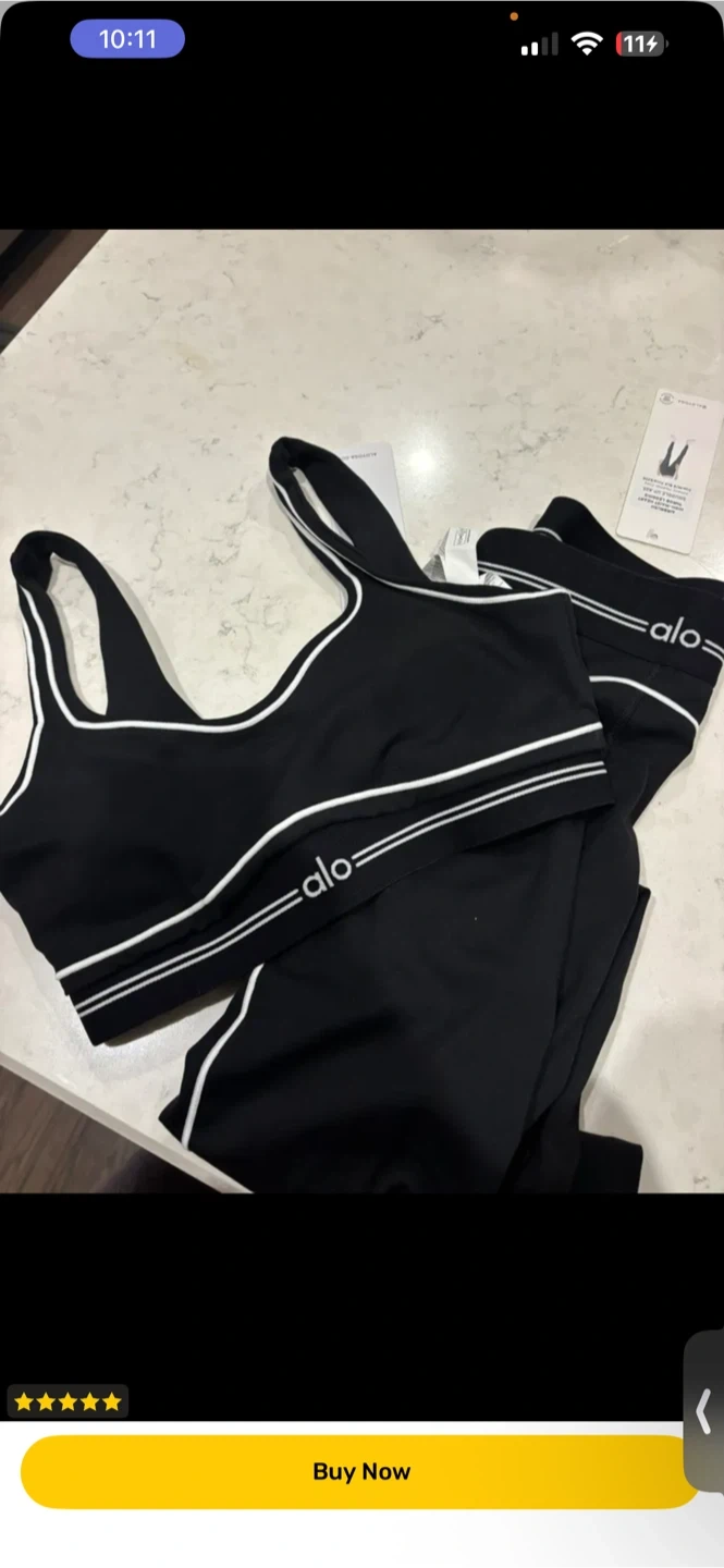 Brand new Alo Yoga sports bra and leggings set. Made with comfortable, stretchy material. It's perfect for workouts or lounging.