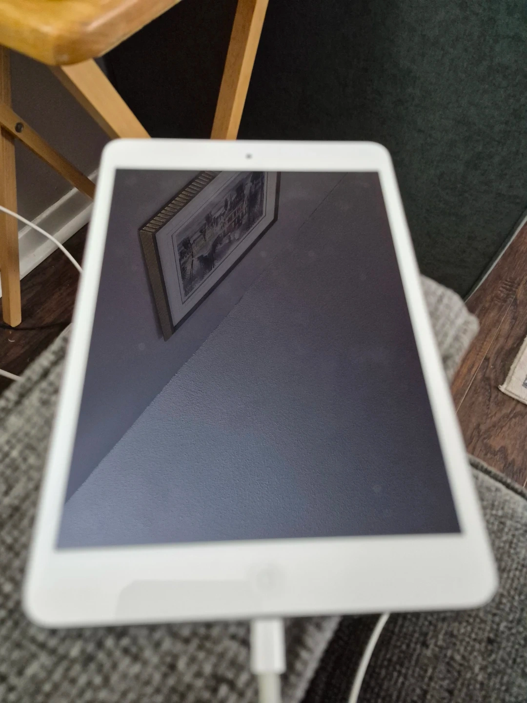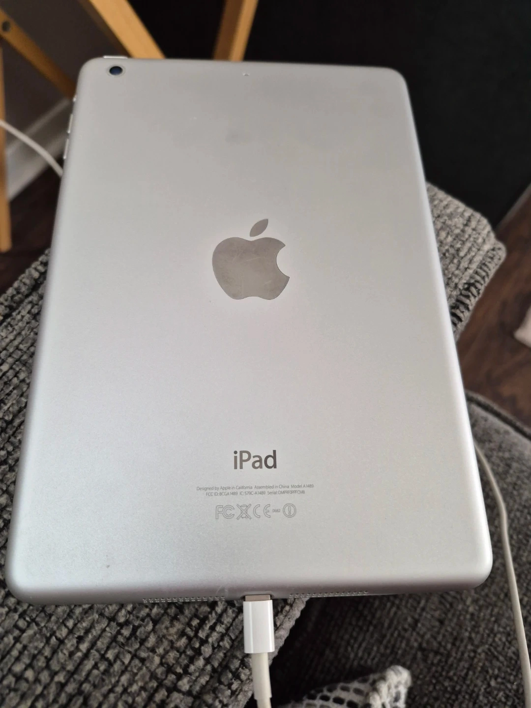Silver iPad with iOS 12.5.8 software. It's in good working condition. This tablet is great for browsing the web or casual gaming.