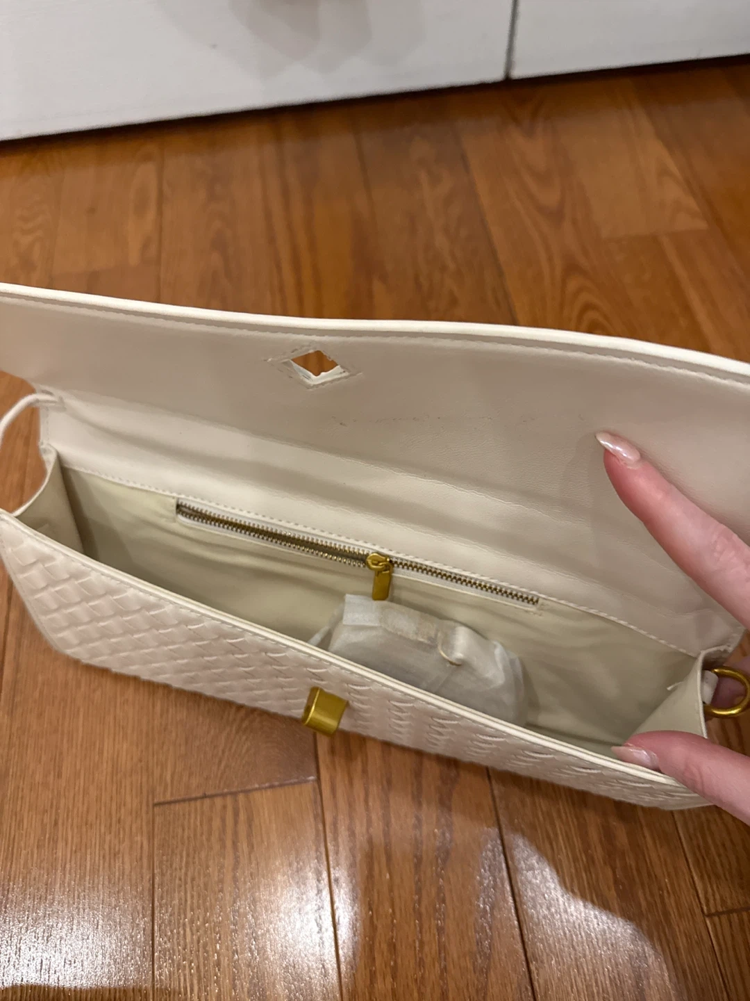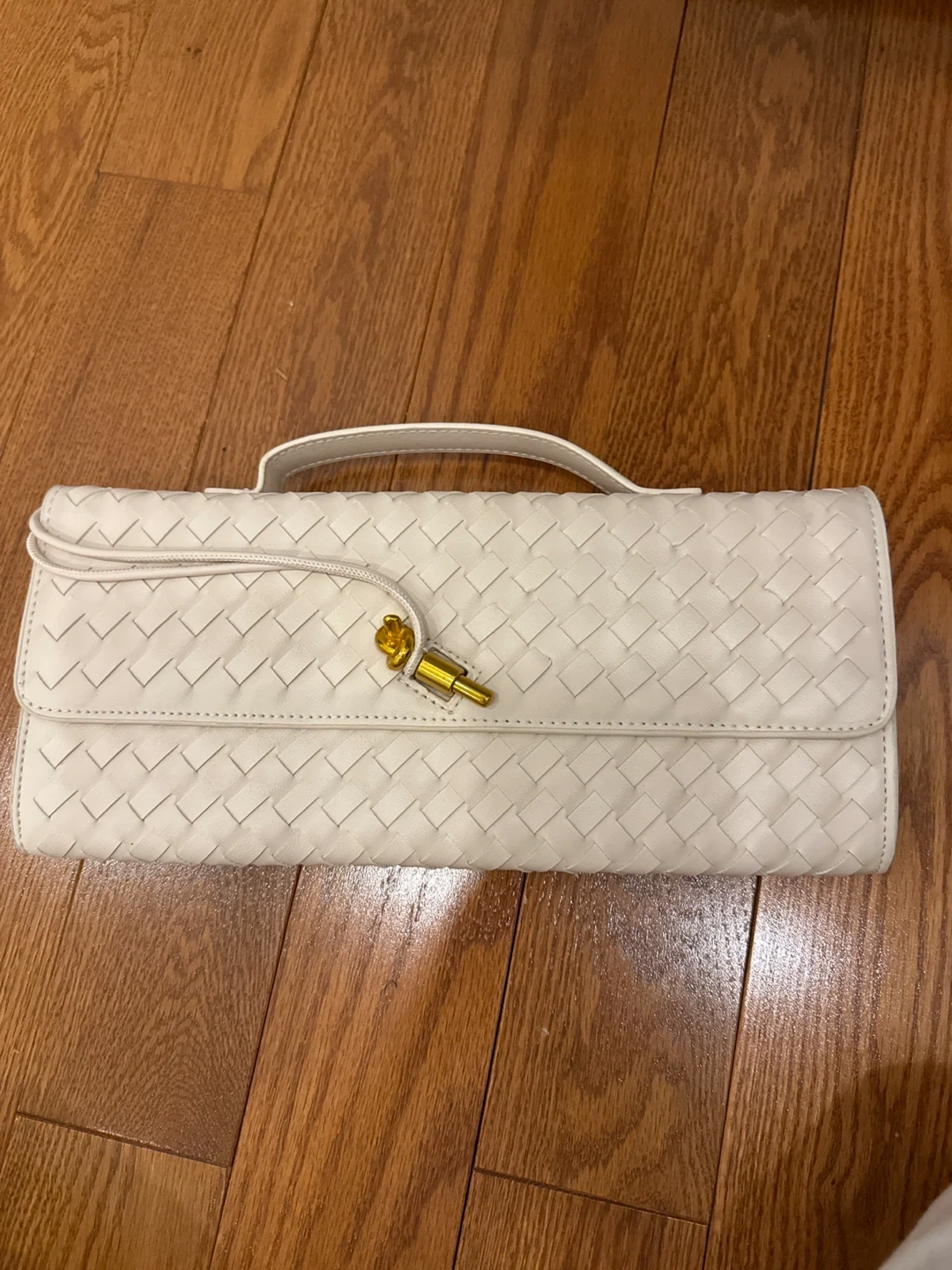 Buy & SellWhite Woven Clutch BagWhite Woven Clutch Bag$37Stylish white woven clutch bag with a top handle. It features a secure clasp closure and a zipped interior pocket. Leather material.ConditionNewWHERE TO MEETCheck LocationView MapSELLERverifiedSarahTaunton670 reviews0 chats·0 favorites·2 viewsSEND CHAT TO SELLERHi Sarah! I’m interested in your listing.Hi Sarah! I’m interested in your listing.Get the Karrot app to chatSign In to chat
