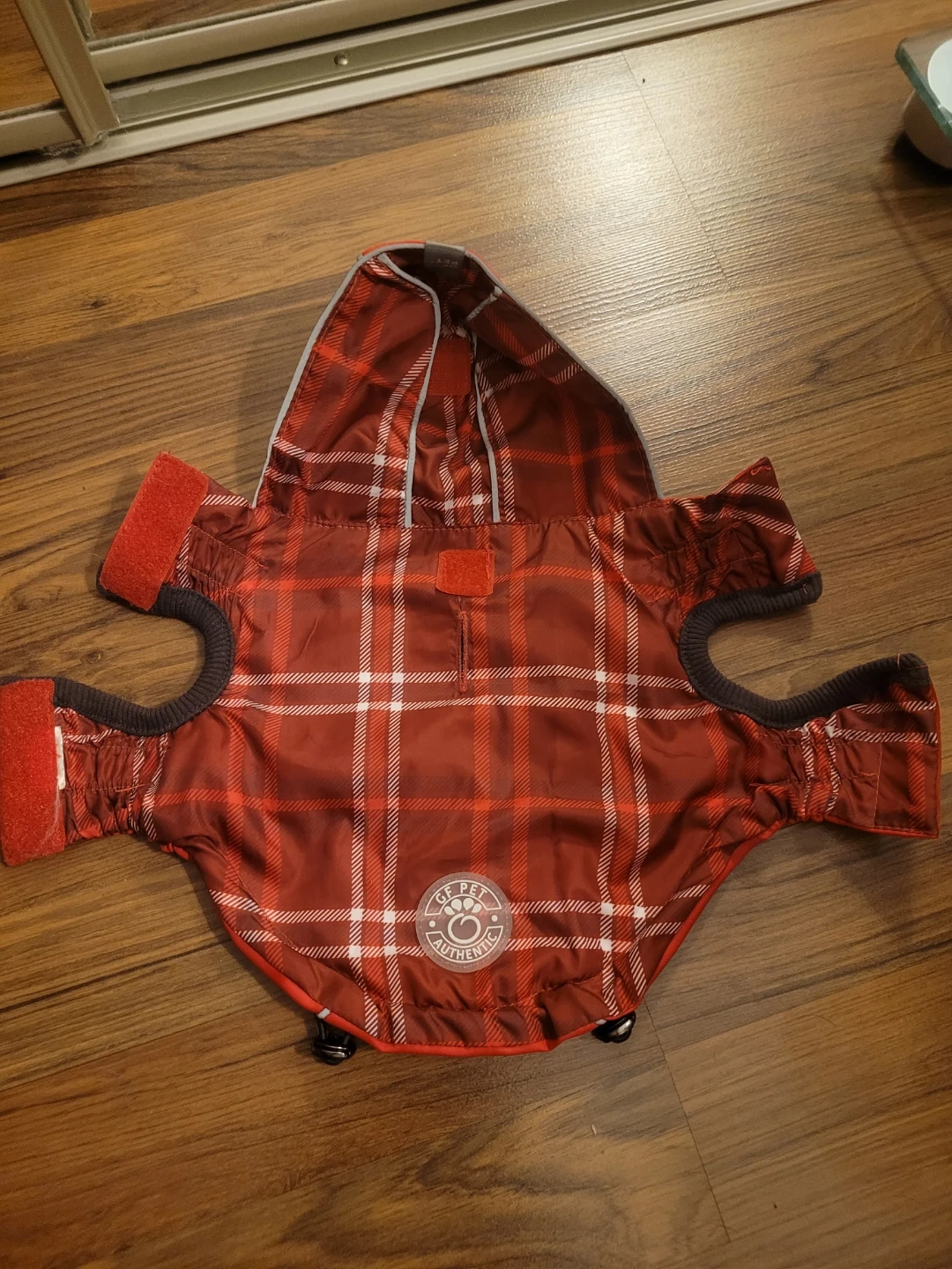 65Keep your furry friend warm and stylish with this GF Pet Authentic dog coat! It features a classic red plaid design and a cozy hood to protect your pup from the elements. Perfect for walks on chilly days! Size for tiny dog up to 6 lbs.