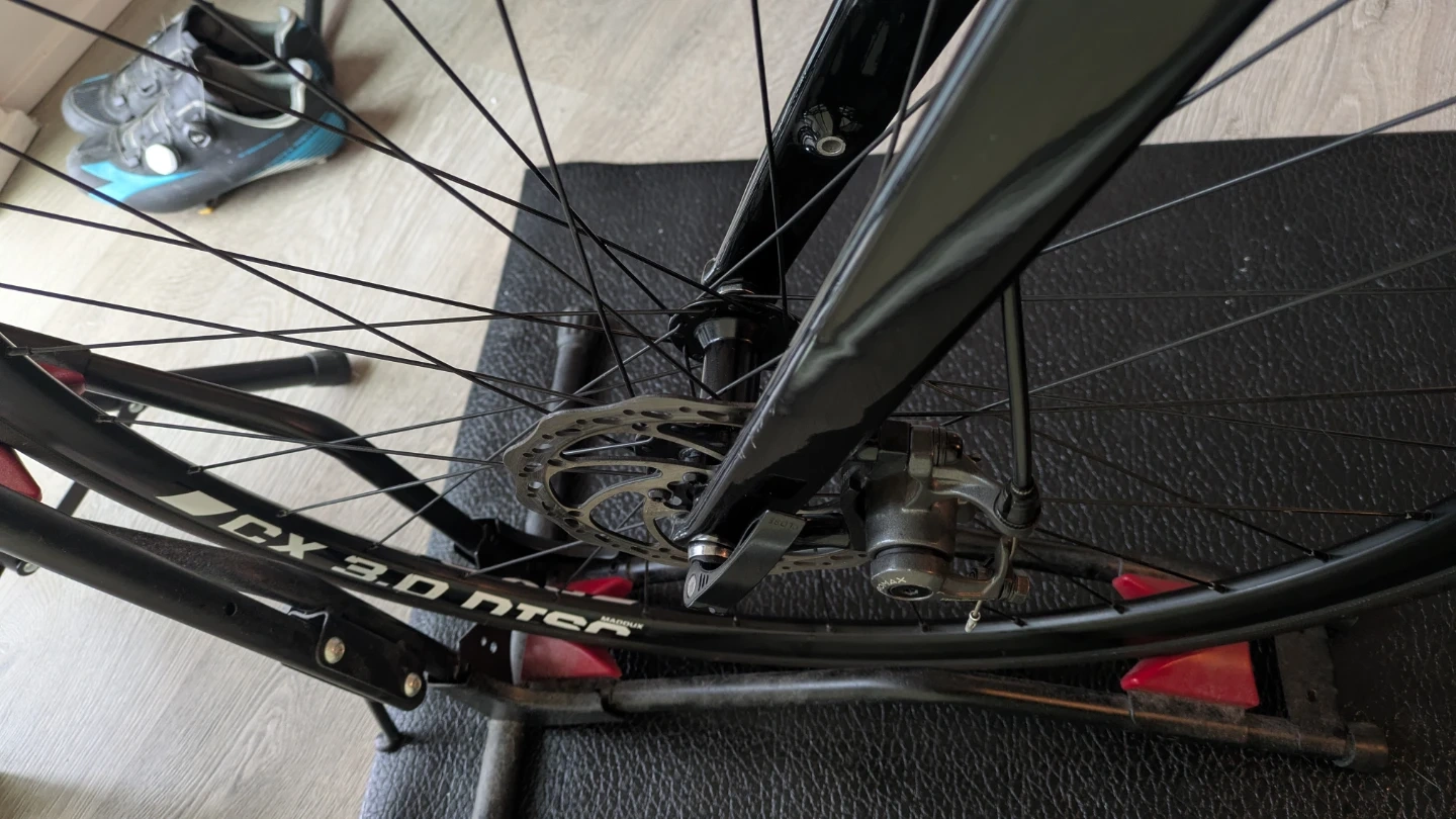 This is a Cannondale CAAD X road bike with aluminum frame. It features Shimano 105 components (groupset and breaks), mechanical discs and a FSA Gossamer crankarm. It has Madux CX 3.0 Disc wheels with Continental Gatorskin tires. It's a size 51 frame.