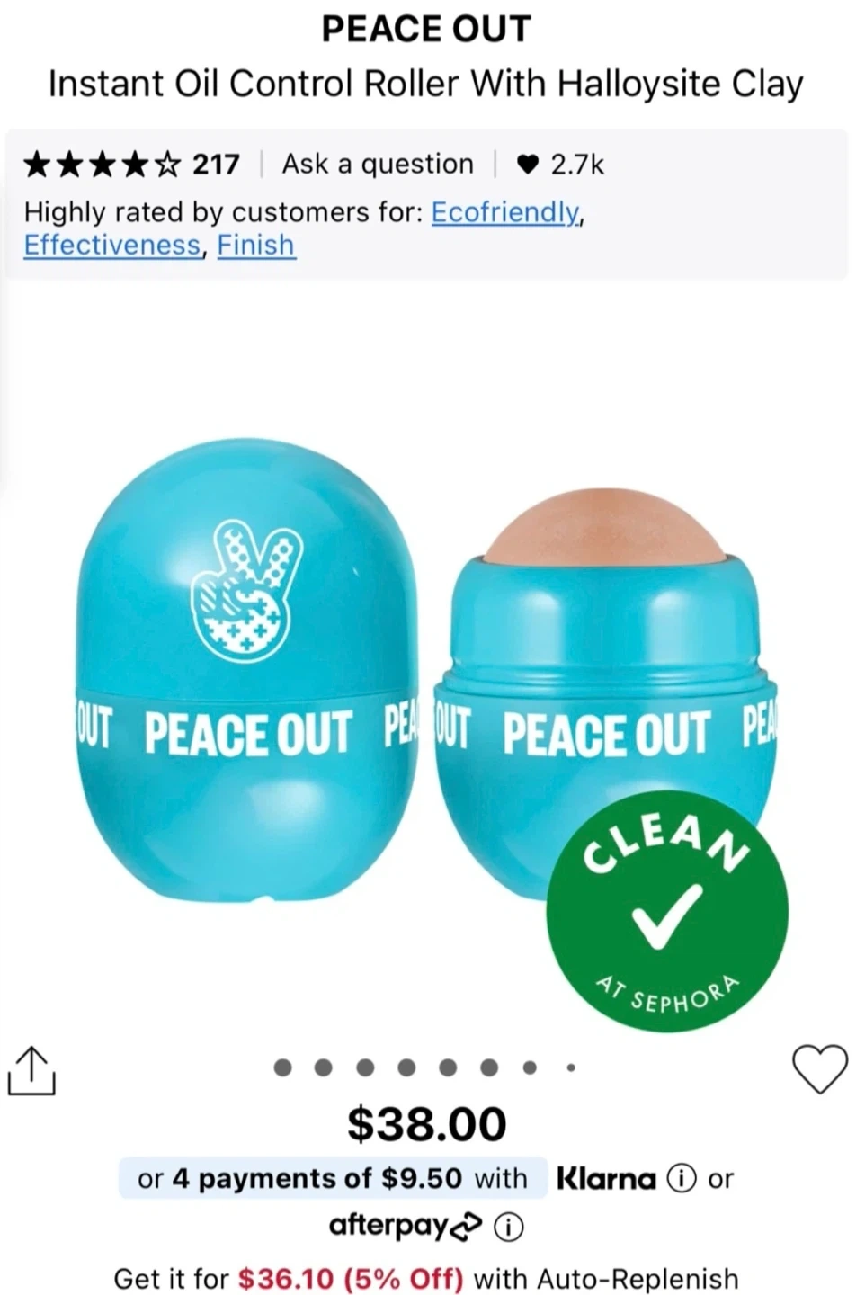 New in box Peace Out Oil Control Roller minimizes look of pores and absorbs excess oil for a refreshed, matte complexion.