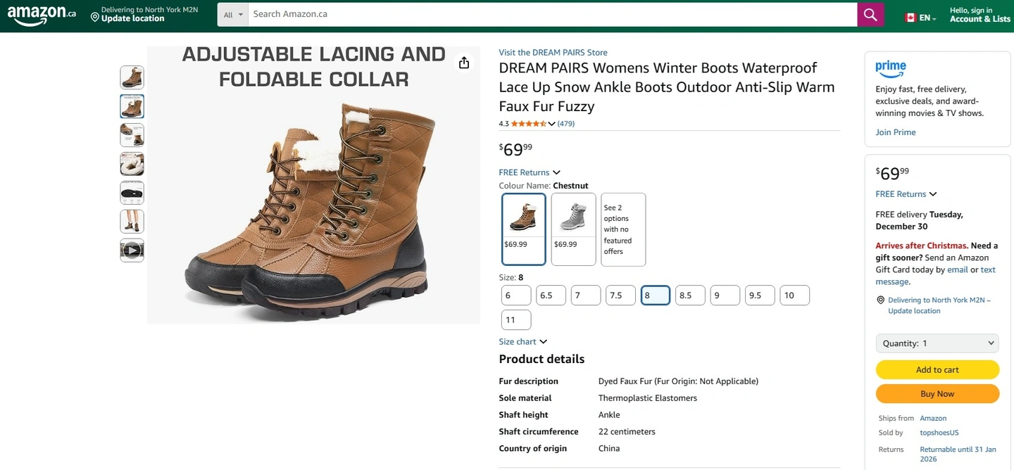 DREAM PAIRS Womens Winter Boots 8