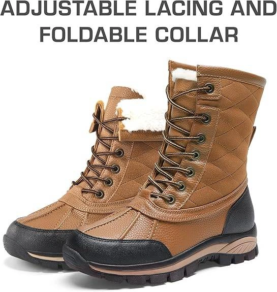 Description: DREAM PAIRS Womens Winter Boots Waterproof Lace Up Snow Ankle Boots Outdoor Anti-Slip Warm Faux Fur Fuzzy