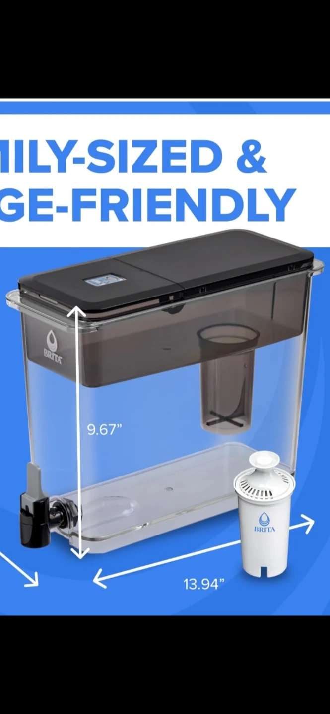 Selling a Brita family-sized water filter pitcher! It's designed to be family-sized and fridge-friendly. It measures 9.67" in height and 13.94" in length. Enjoy fresh, clean water!