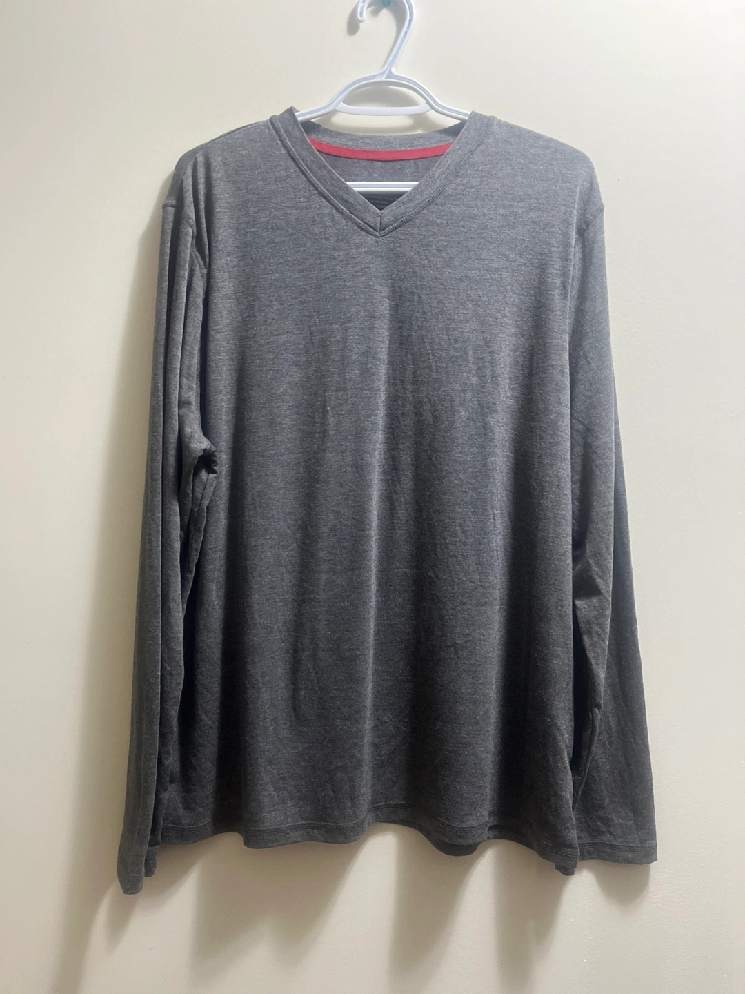 Comfortable charcoal long sleeve top.