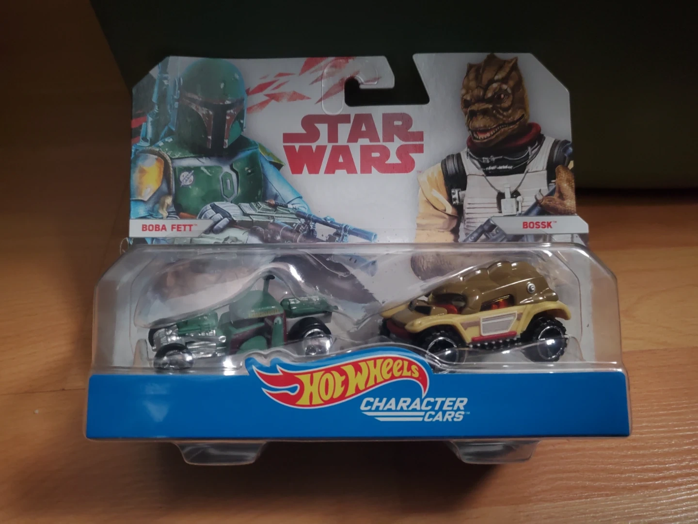This Hot Wheels set includes two character cars from Star Wars: Boba Fett and Bossk. These die-cast vehicles are inspired by the iconic characters. Great for Star Wars fans and collectors!