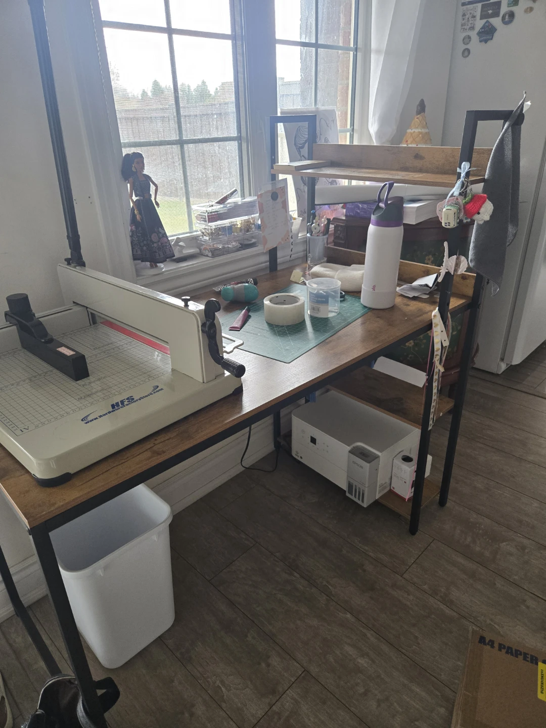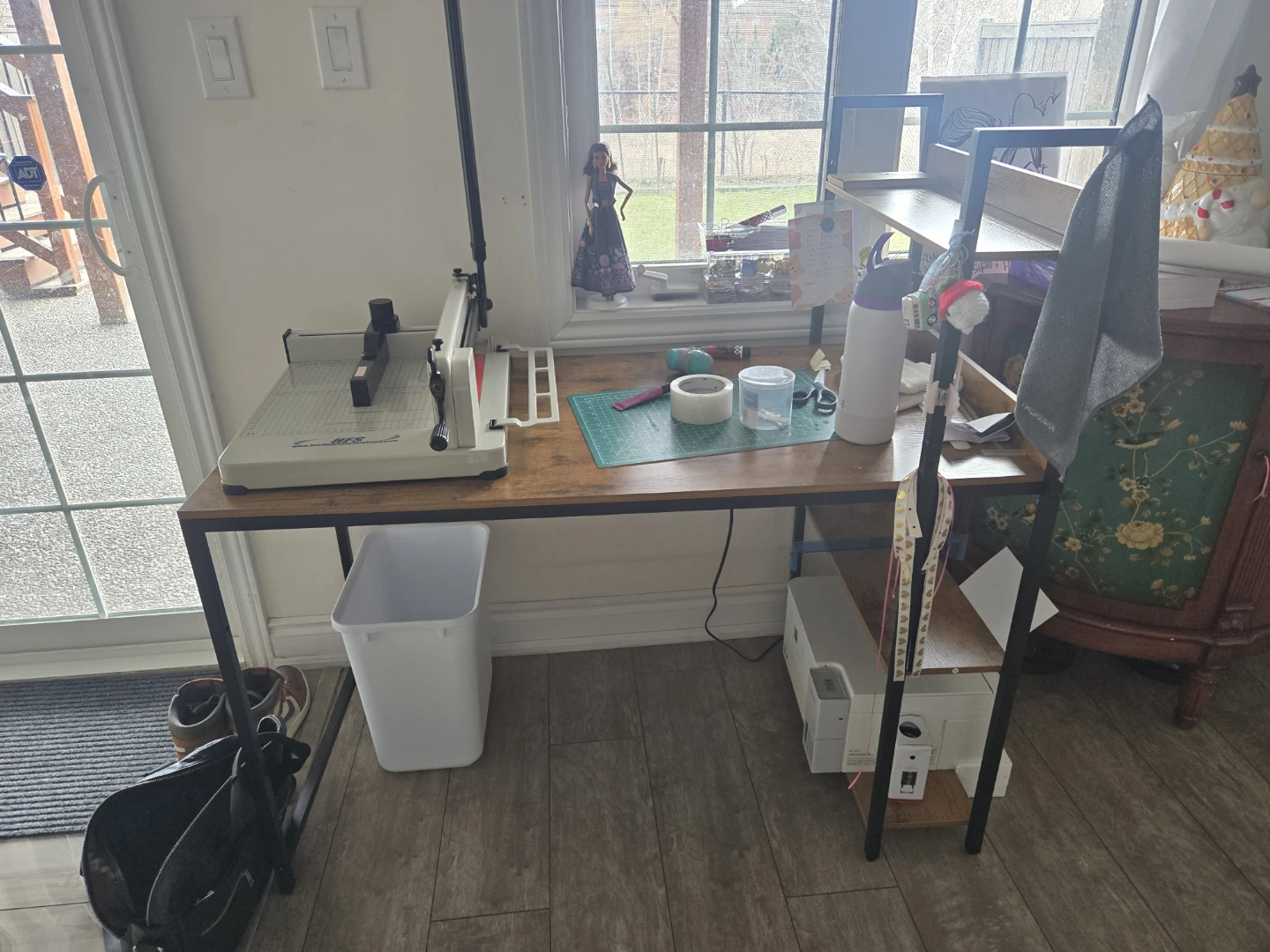 Crafting Desk with Paper Trimmer and Storage Shelves
