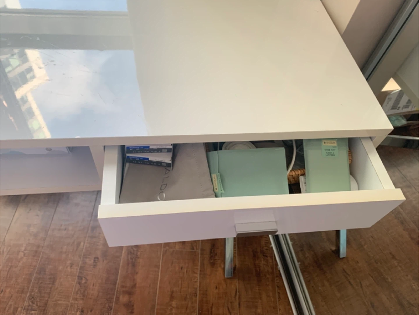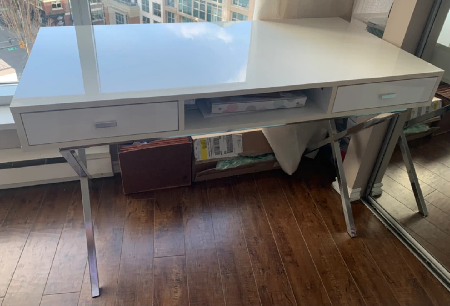 White High-Gloss Desk with Chrome Legs