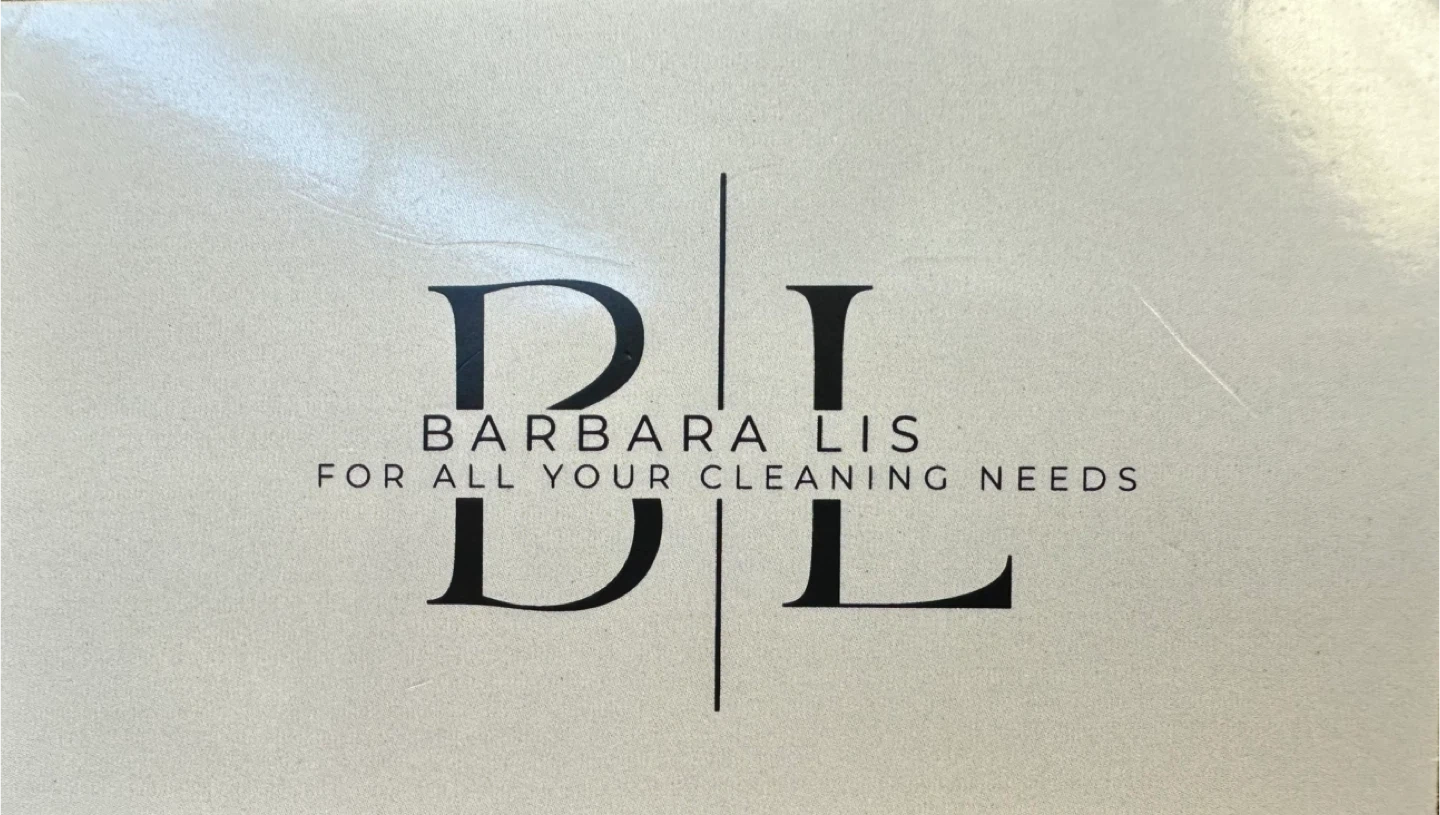 Business card for Barbara Lis, offering professional cleaning and housekeeping services. Services include weekly, bi-weekly, monthly, or one-time cleanings. Additional services like carpet shampooing, steaming, fridge cleaning, window washing, and oven cleaning are available for an extra cost. Personal organizing services are also offered.