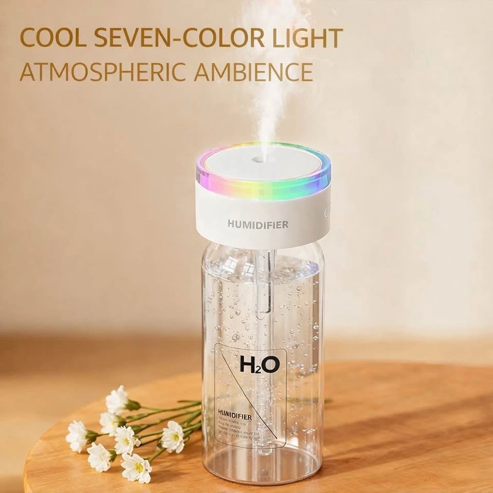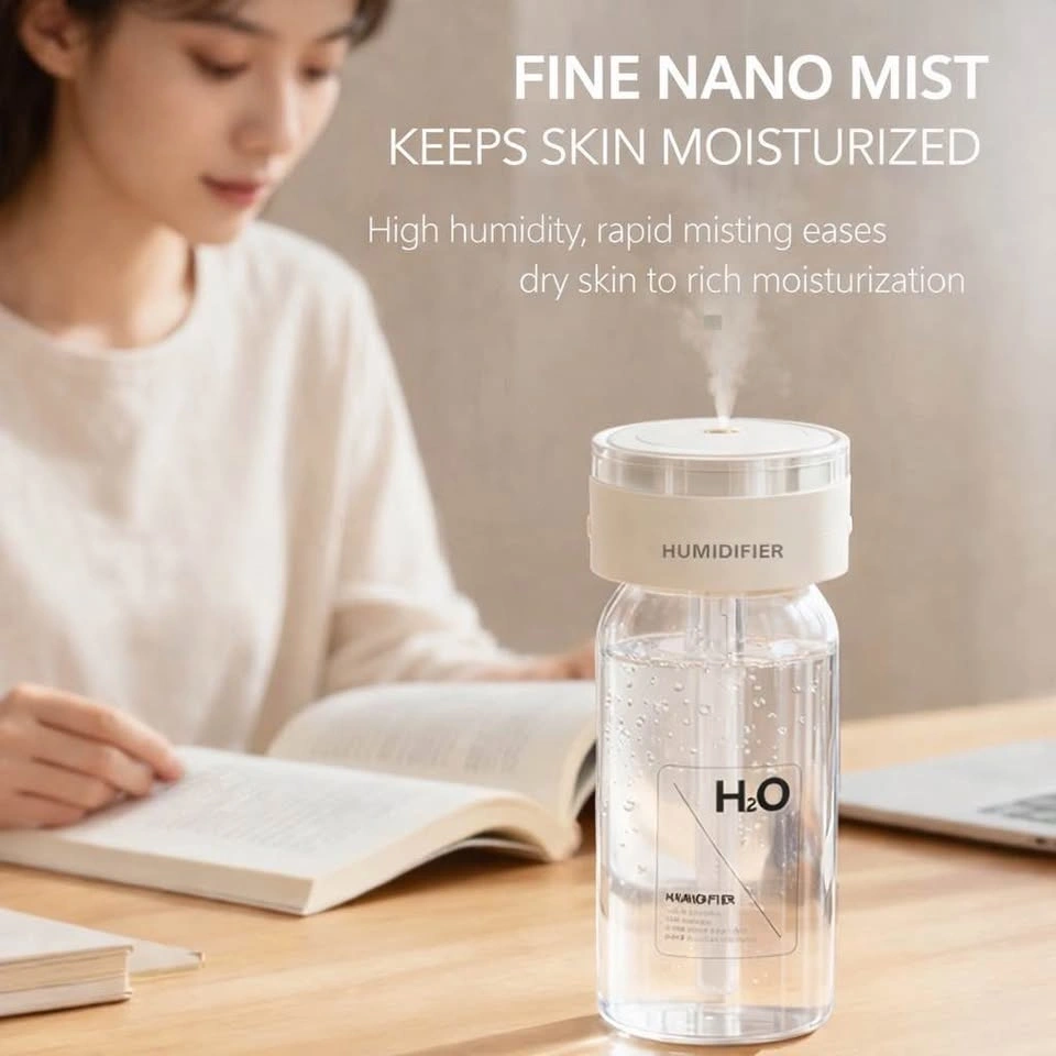 Keep the air comfortably moisturized anytime, anywhere with this compact wireless humidifier. Designed with a minimalist H2O bottle style, itβs perfect for bedrooms, offices, nurseries, and travel.