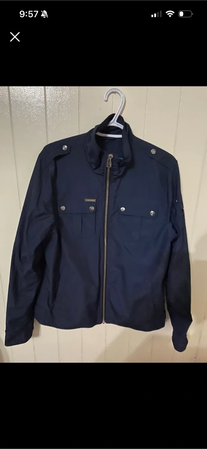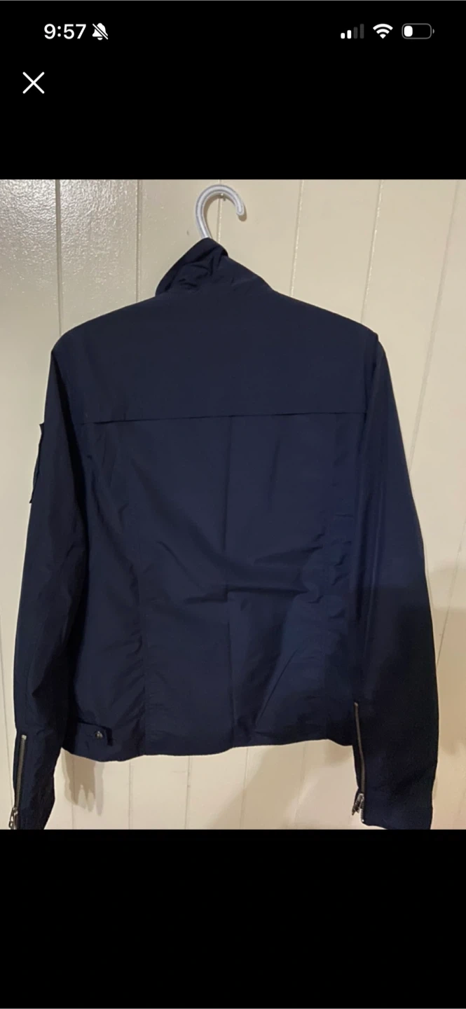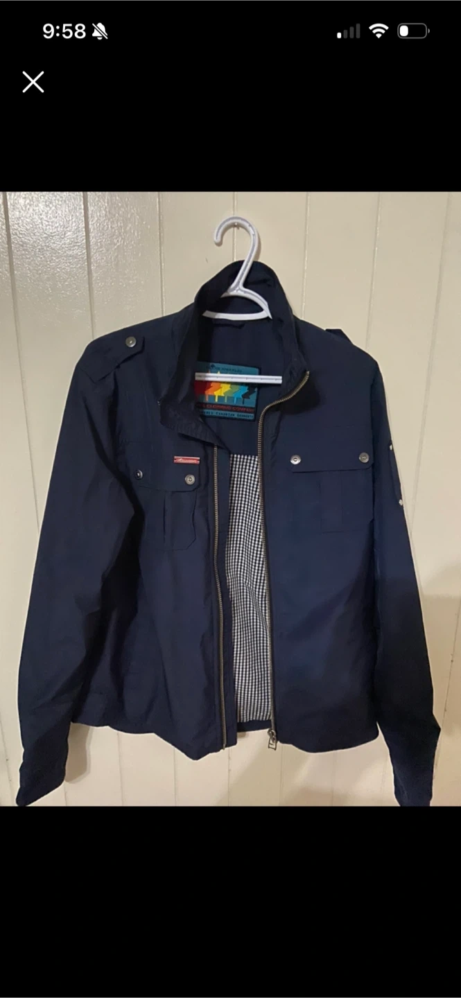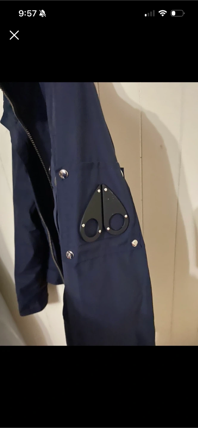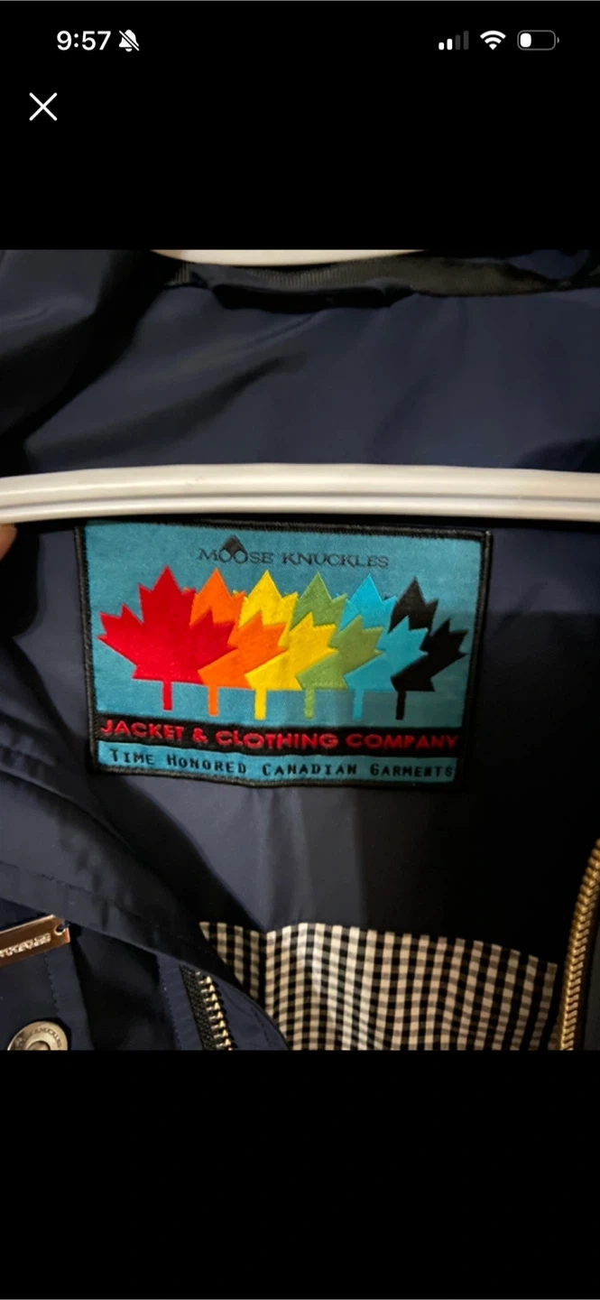 This is a Moose Knuckles jacket in navy. It features a checkered lining inside and multiple buttoned pockets. This jacket is from the Jacket & Clothing Company.