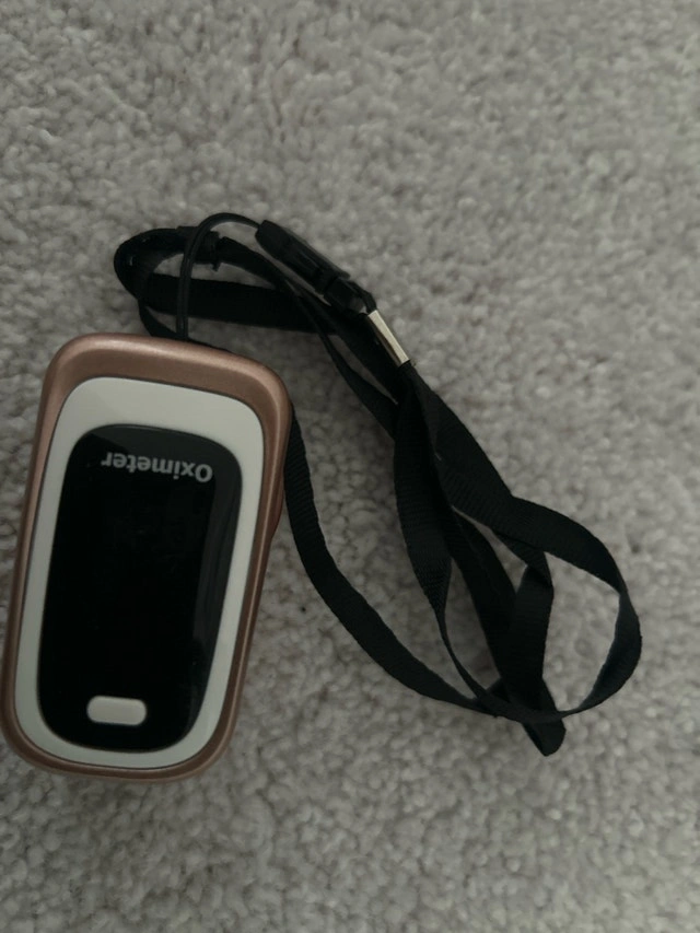 This is an Oximeter, used to measure the oxygen levels in your blood. It is in good condition and comes with a lanyard for easy carrying. It's quite handy, I must say. If the ad is up, it's available!