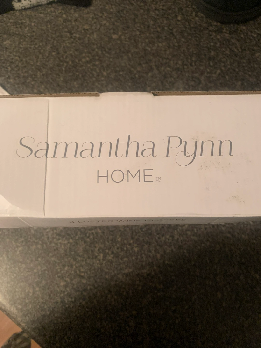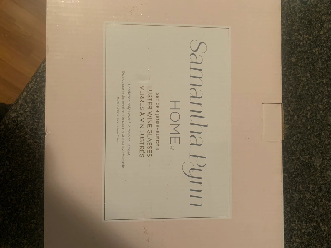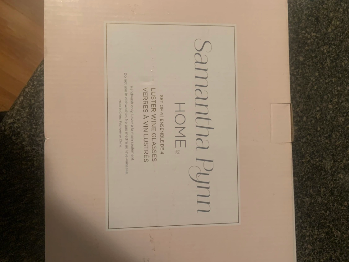 THREE wine glasses with a lustre finish. They are in their original box. Each glass is approximately 9 inches tall.