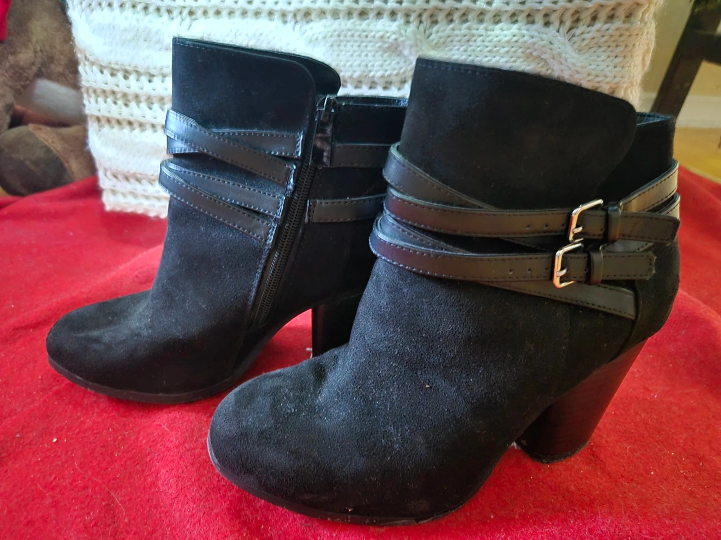 These Torrid size 7W booties feature a stylish black design with decorative straps and a comfortable block heel, perfect for adding a bit of flair to any outfit. These booties have been worn 3 times. In great condition