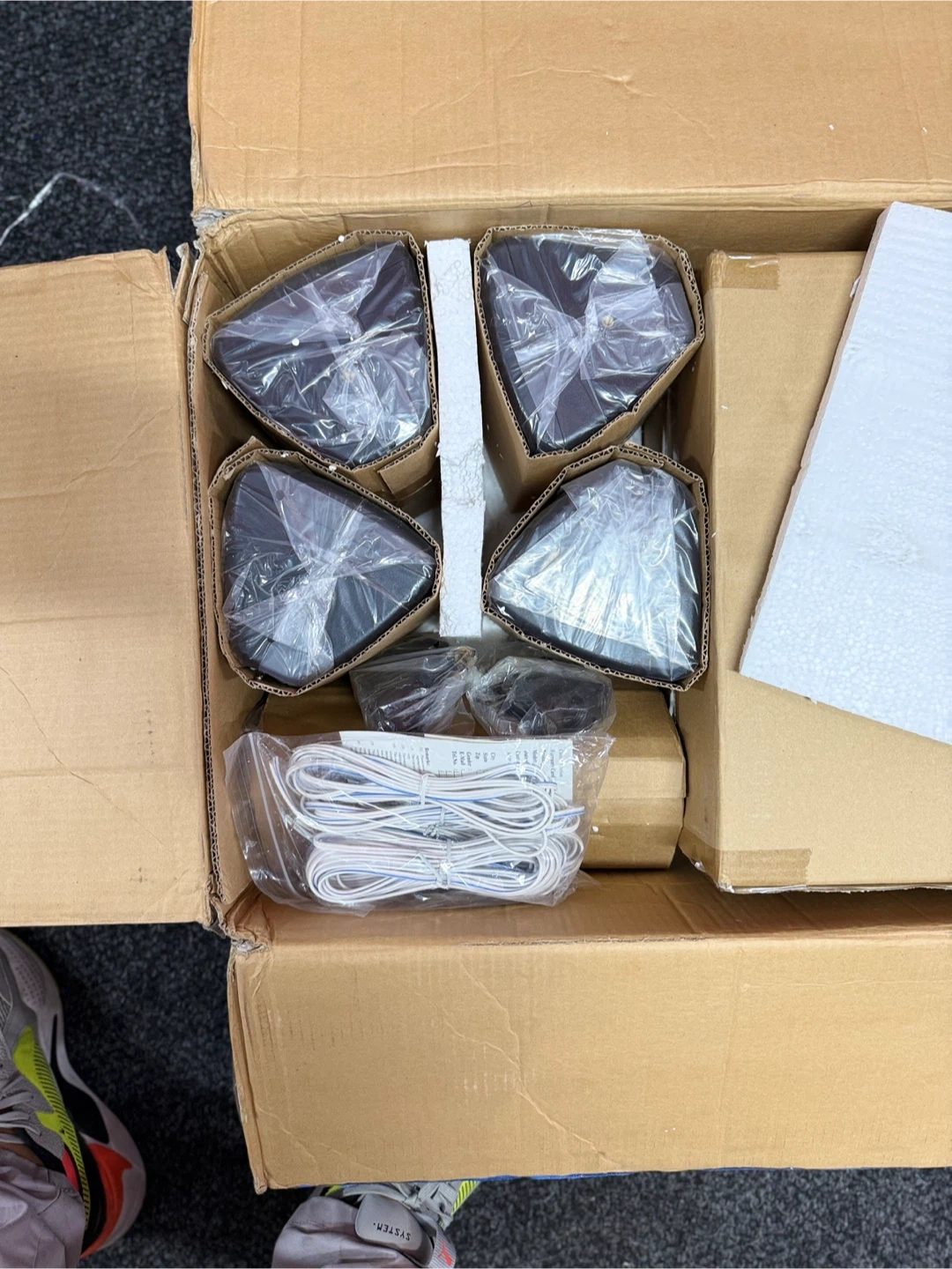 Selling a Theater Innovations Professional Home Theater Series TI-4000 system. It has a system power of 800 Watts. The satellites have an acoustically transparent crimplene grille. Perfect for a home theater setup!